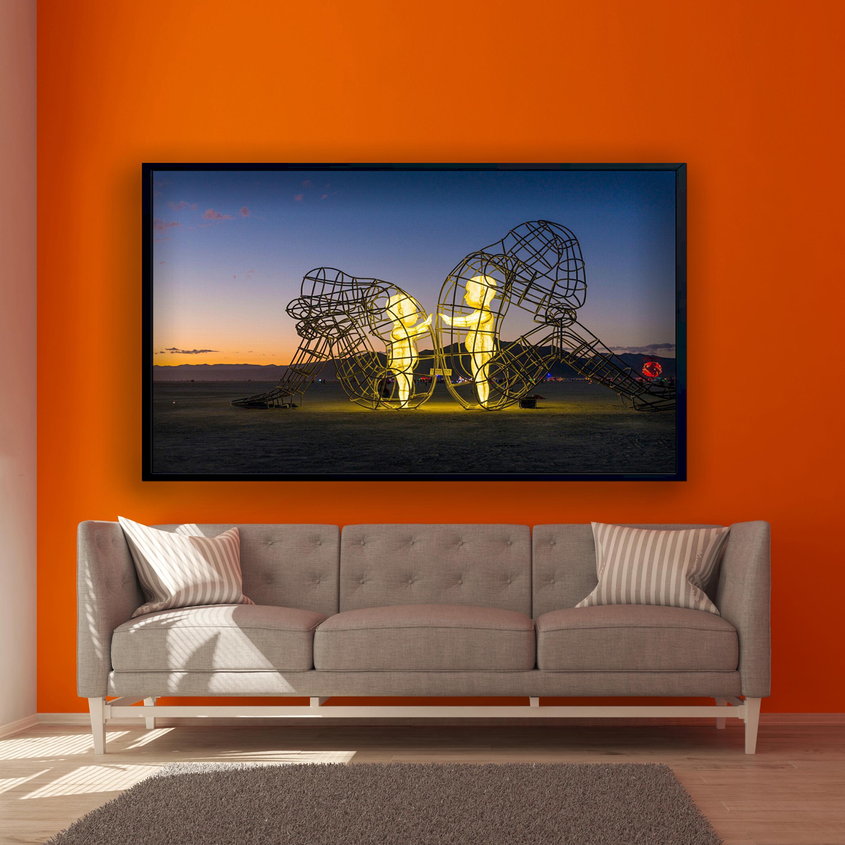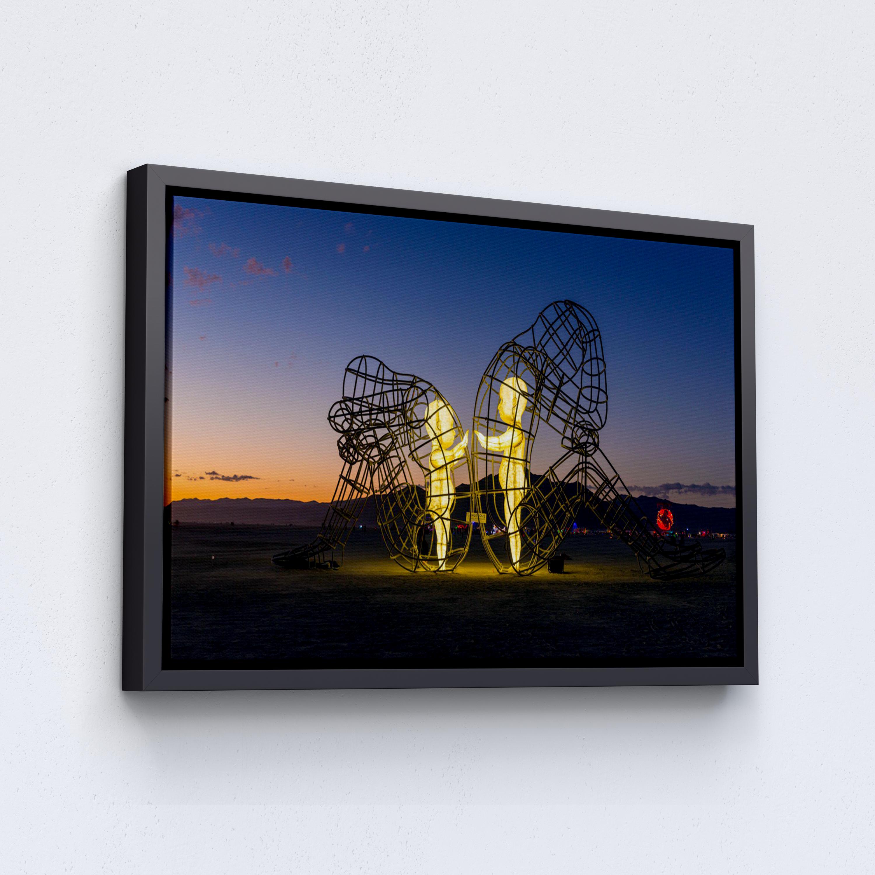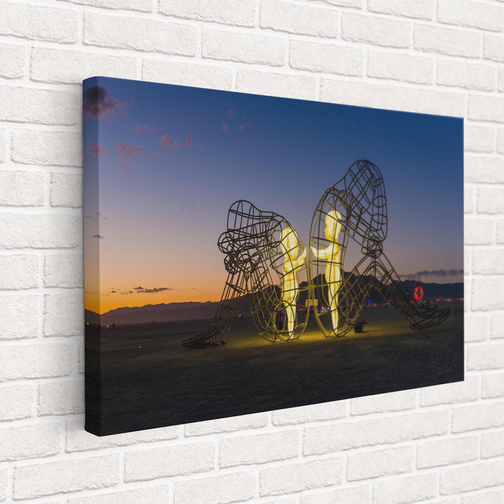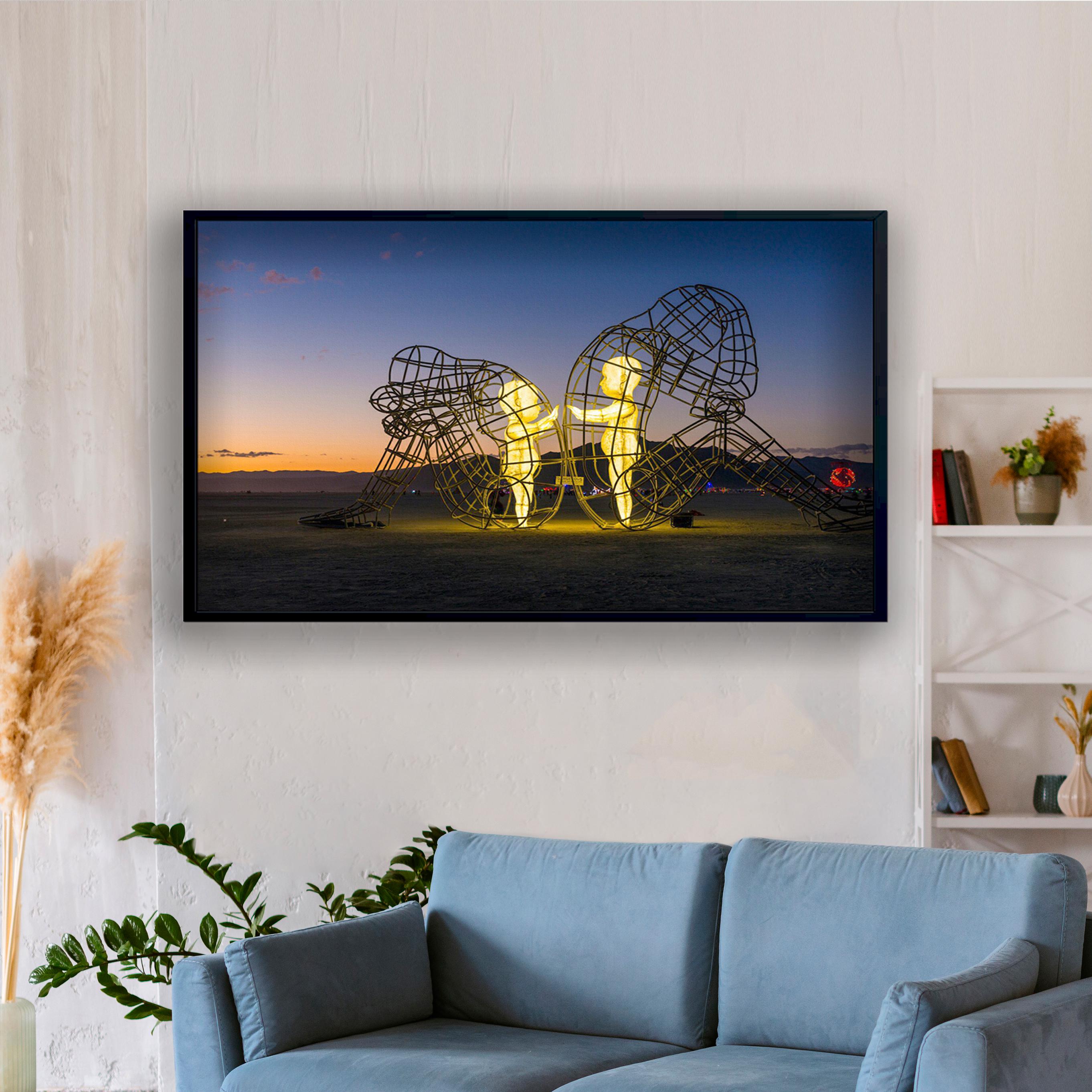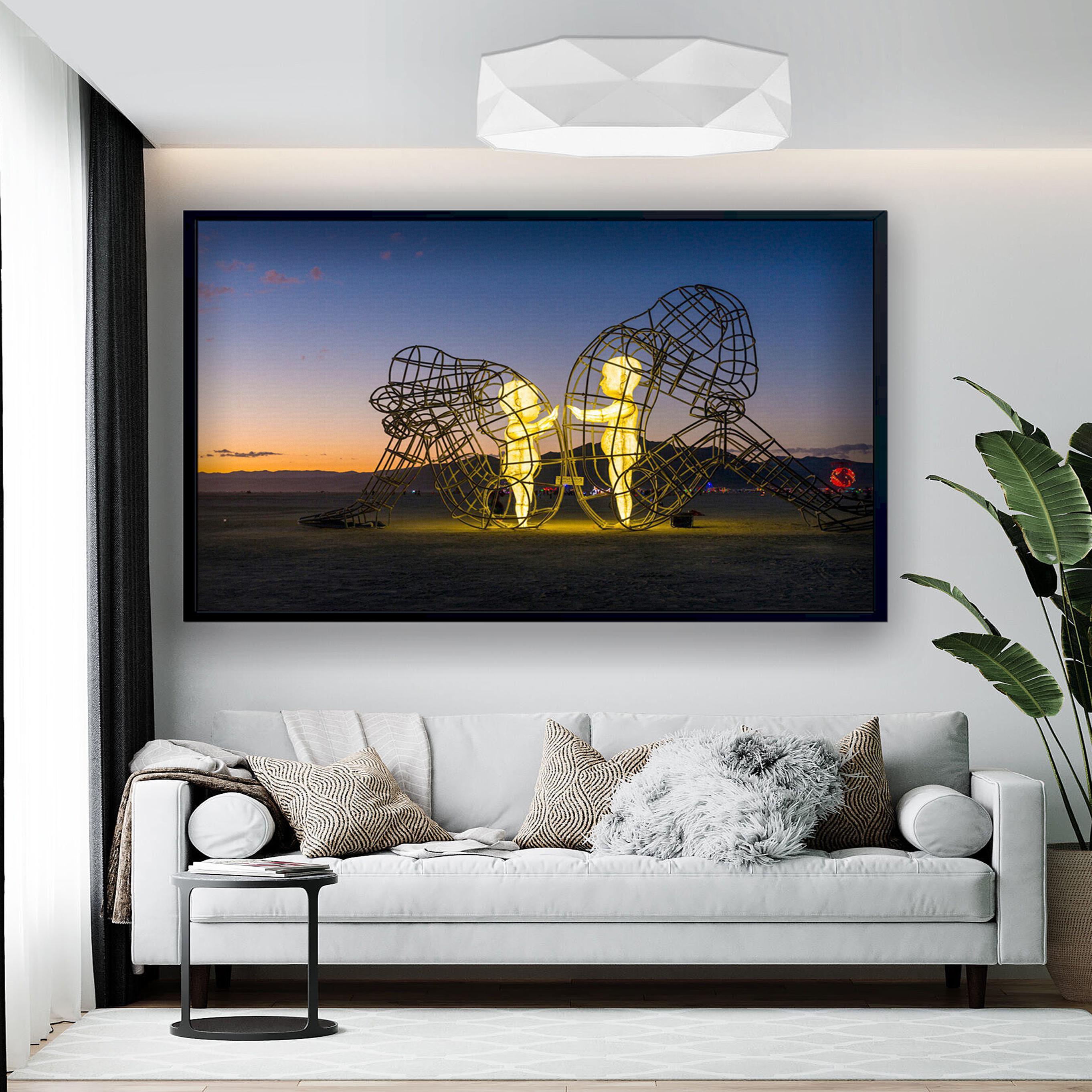 Burning Man Festival Poster, Love Sculpture by Alexander Milov Canvas Decor, Children Imprisoned in Adult Bodies, Alexander Milov Wall Art, Framed Canvas Print, Ready to Hang.