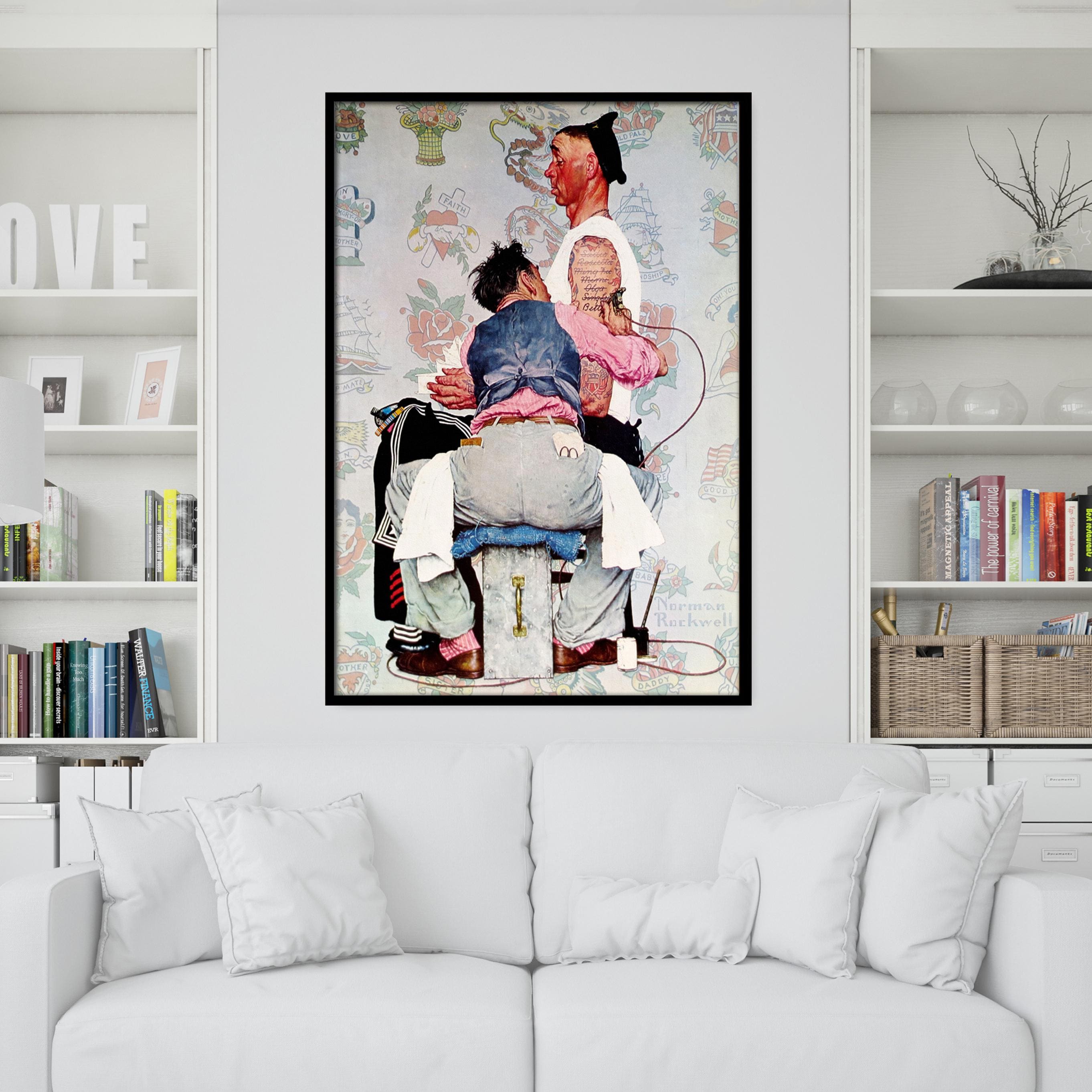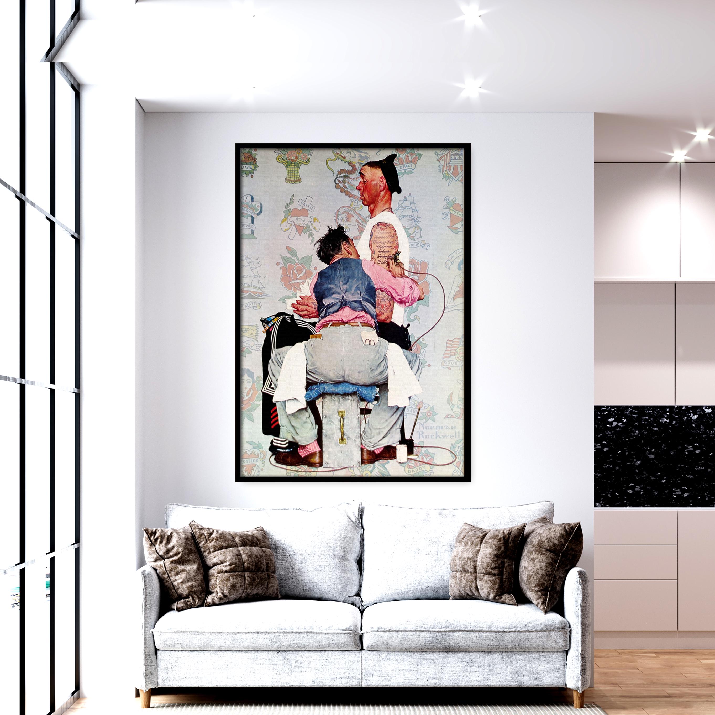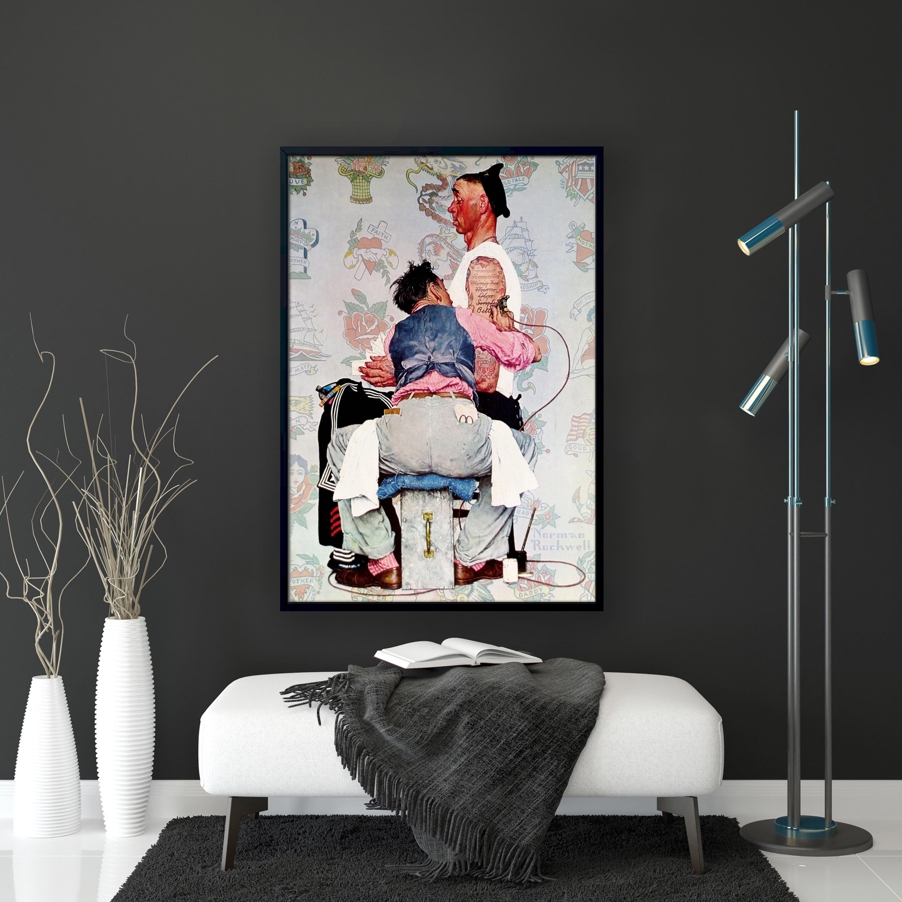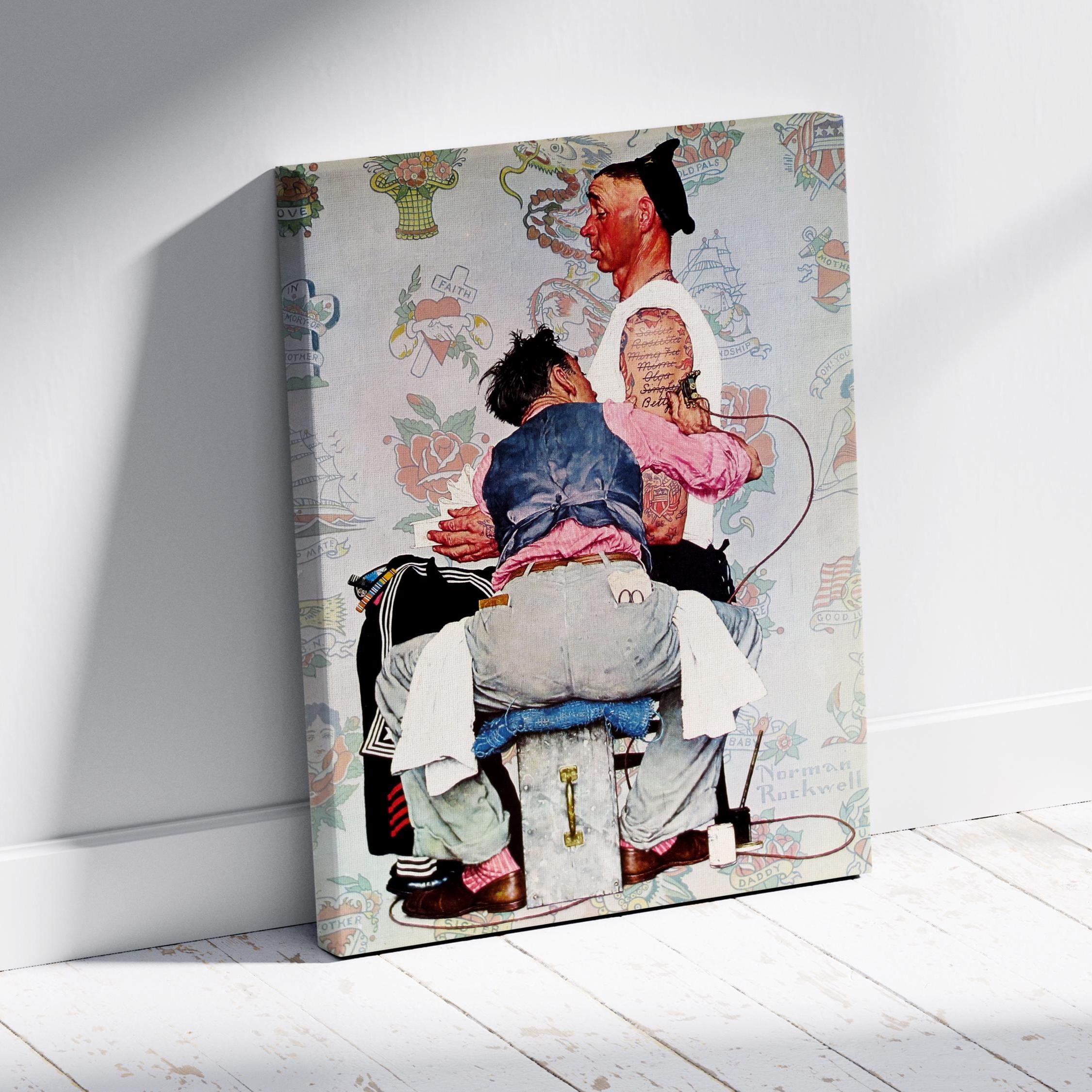 Norman Rockwell Tattoo Artist Canvas Print, Norman Rockwell Wall Art, Tattoo Artist Wall Art, Framed Canvas, Ready to Hang.