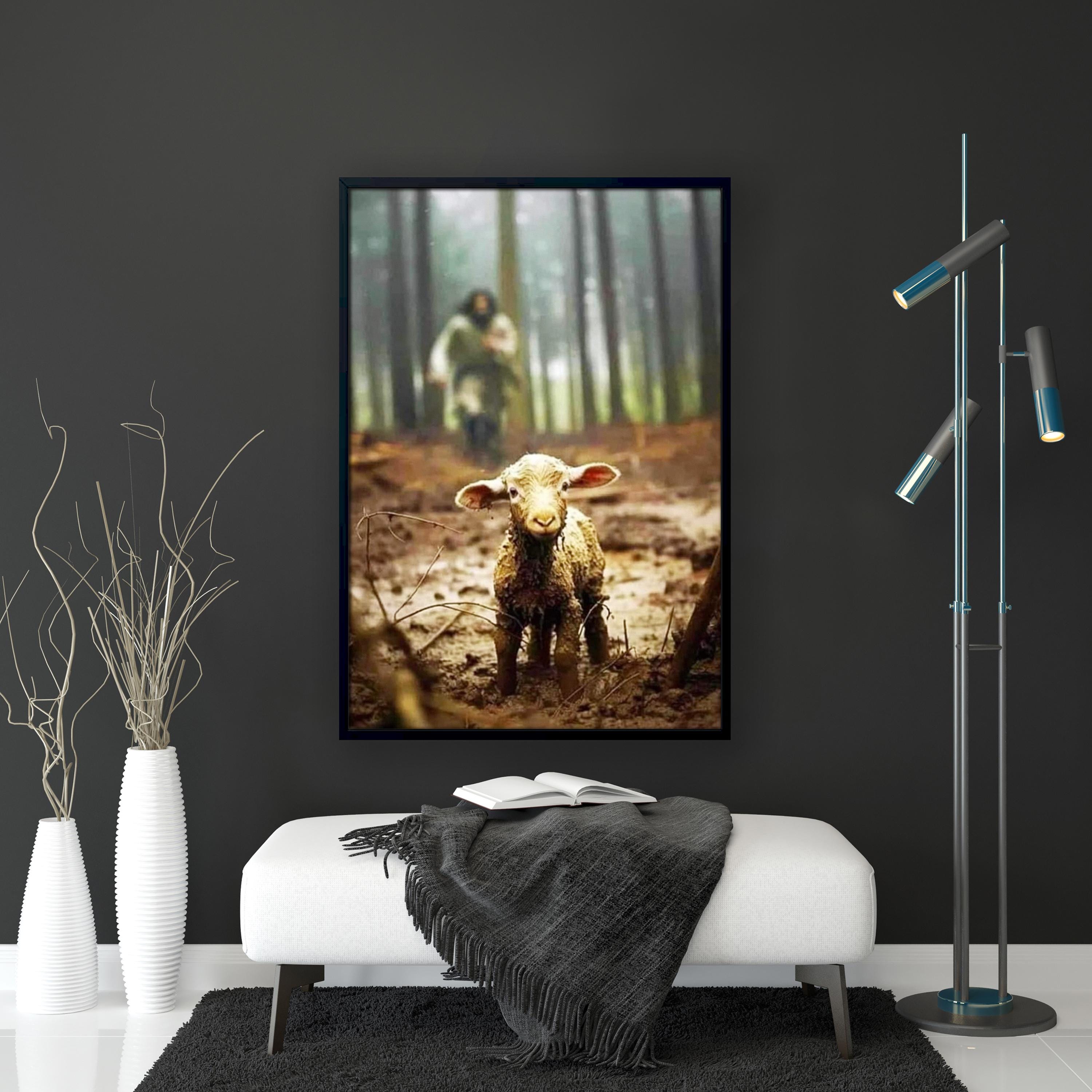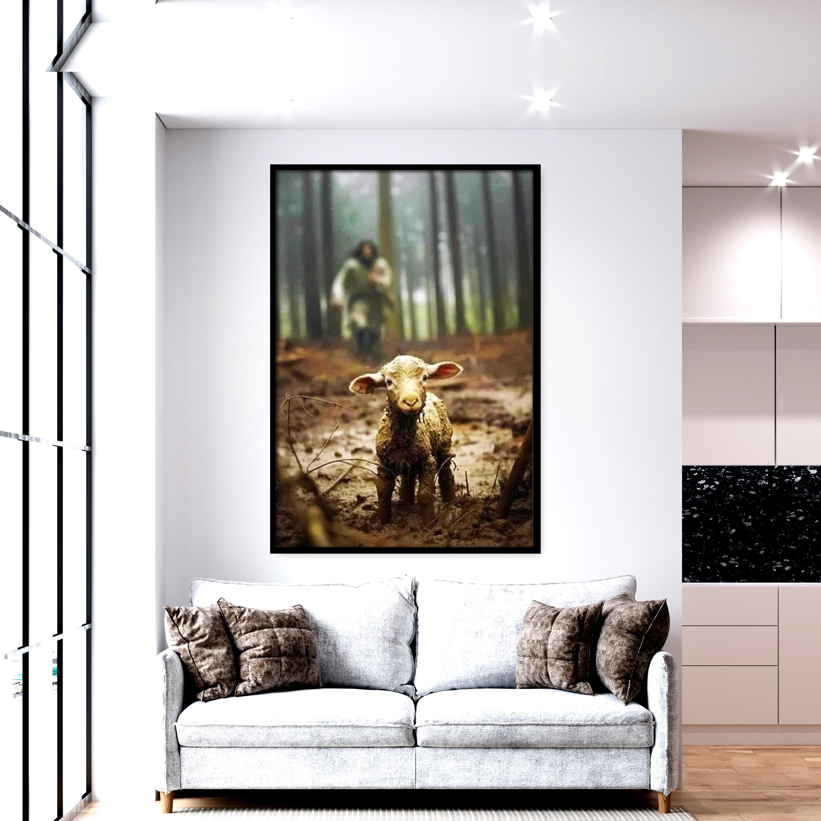 Jesus Chasing the Lost Lamb Wall Art, Jesus the Lamb of God Canvas Wall Art, Ready to Hang.