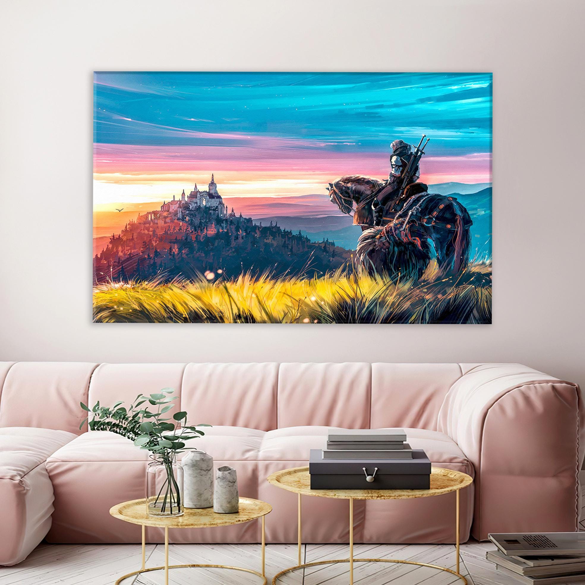 The Witcher Canvas Wall Art, Epic Fantasy Gaming Art, Geralt of Rivia Poster, Framed Wall Decor for The Witcher Fans.
