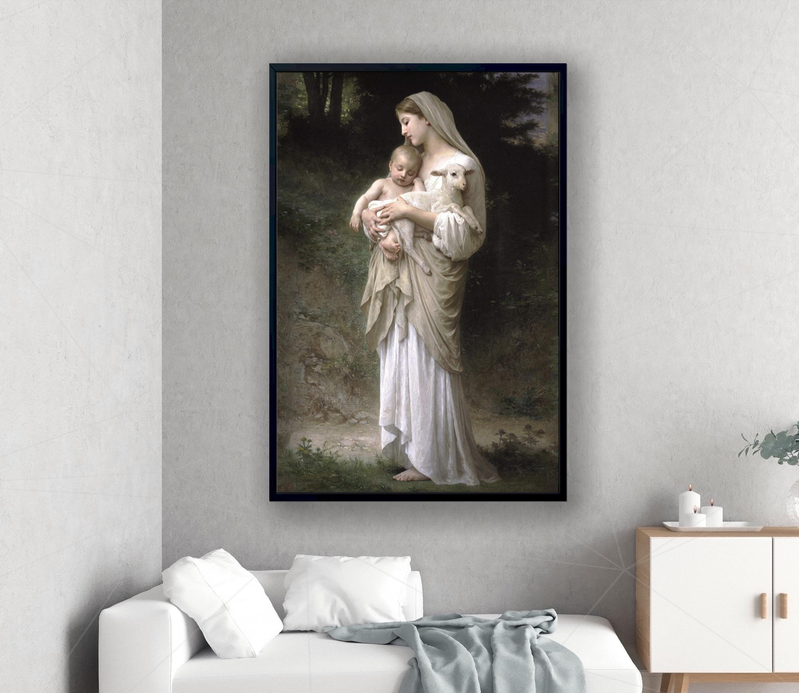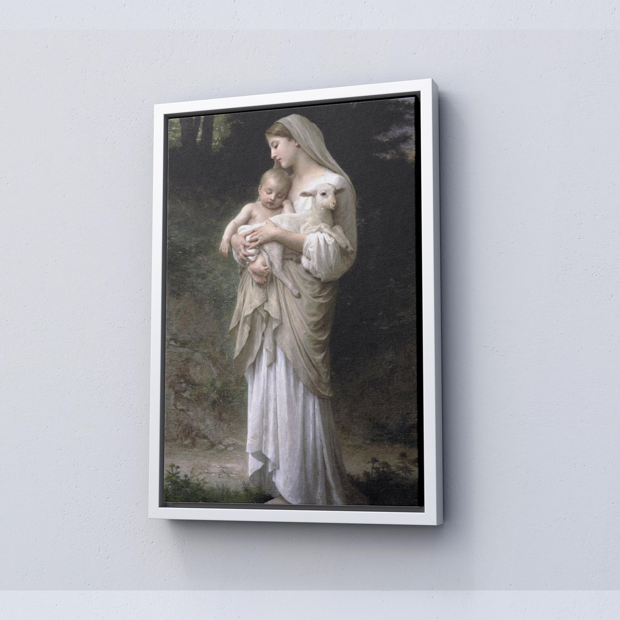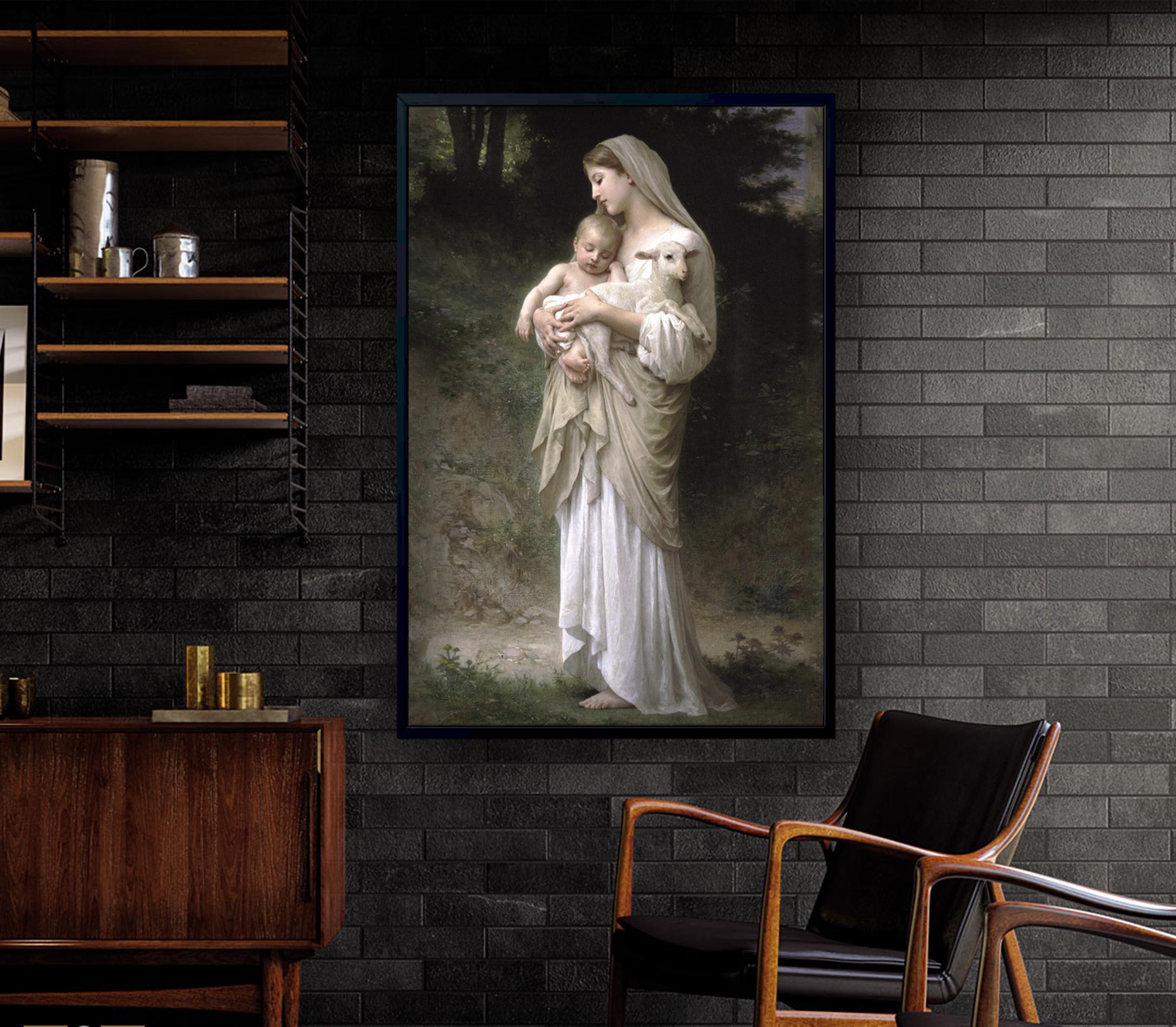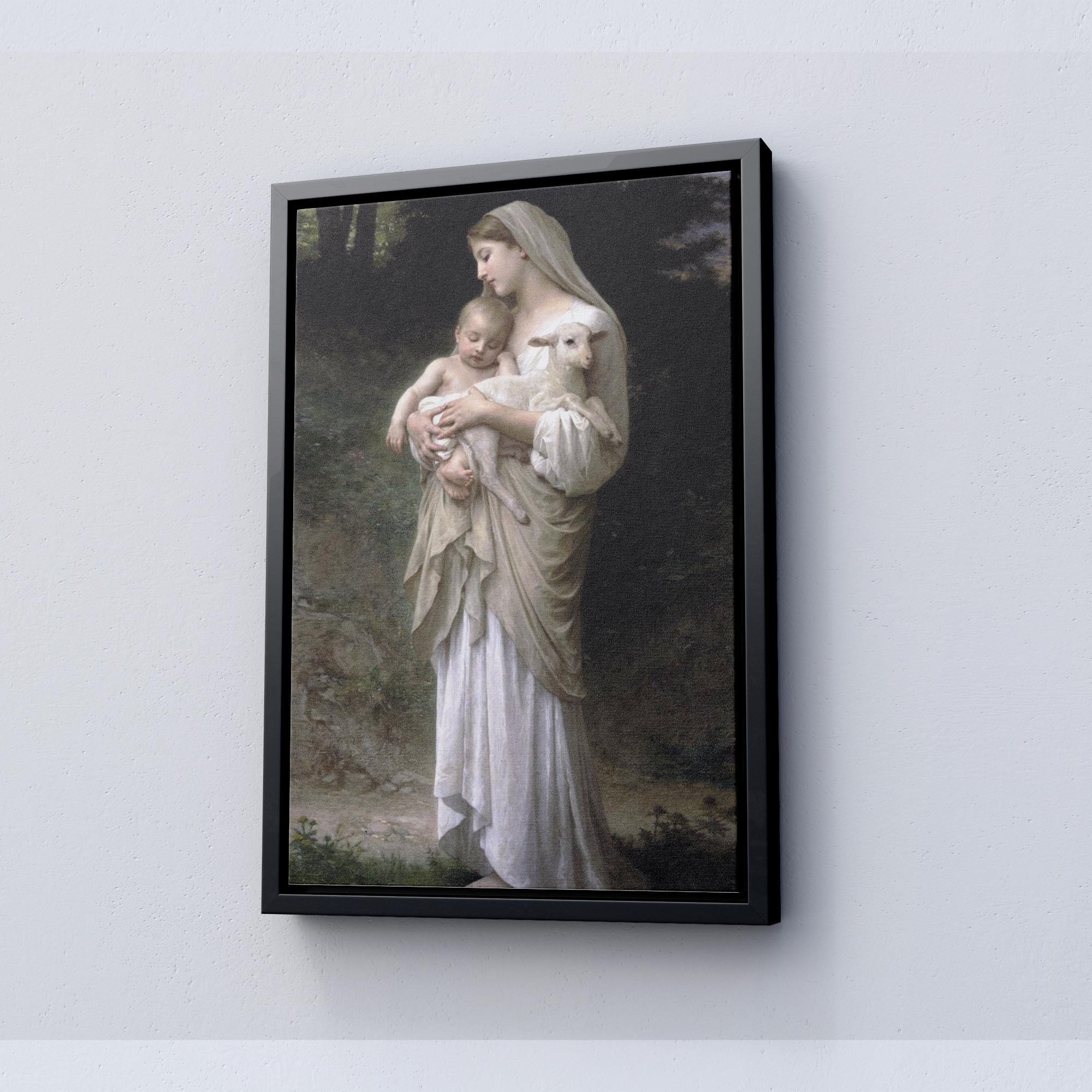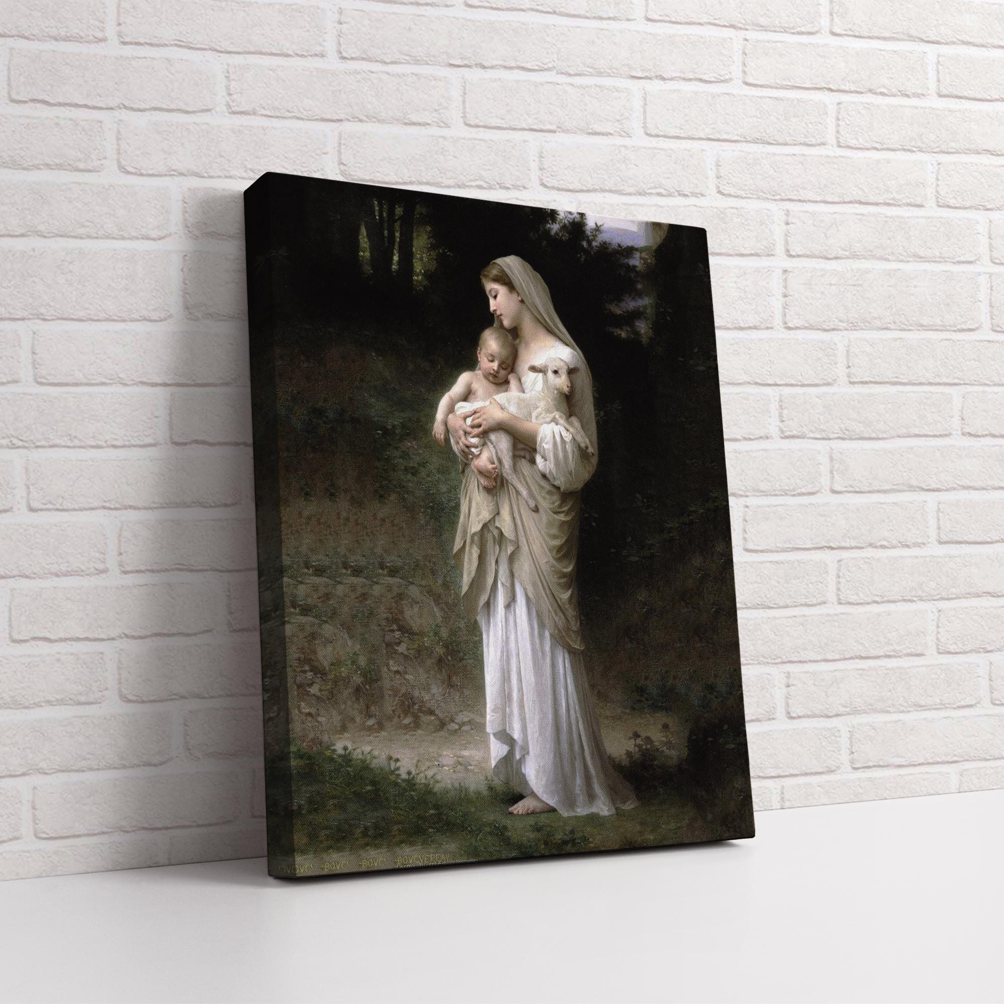 Linnocence William-Adolphe Bouguereau - Virgin Mary with Baby Jesus and Lamb Canvas, Ready To Hang.