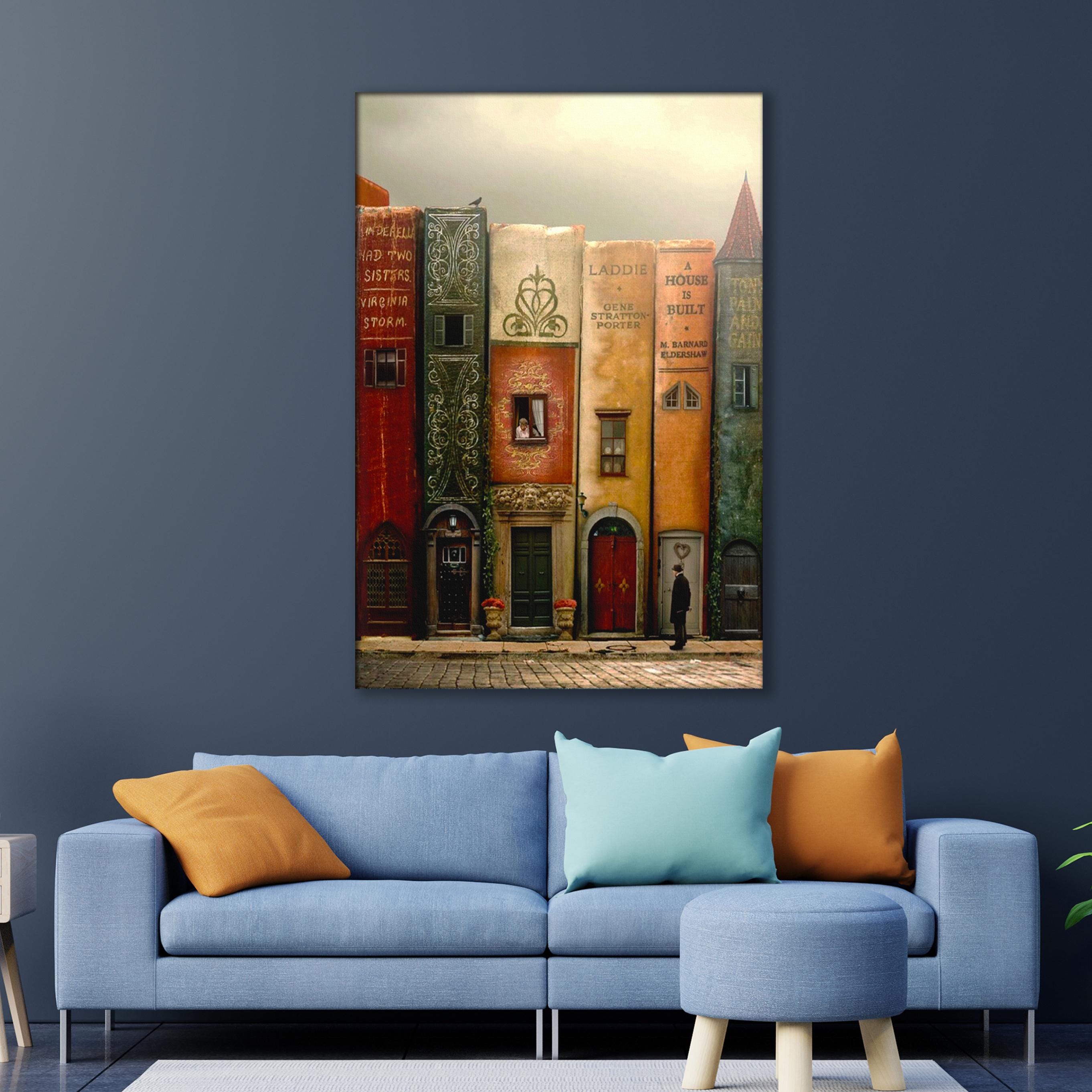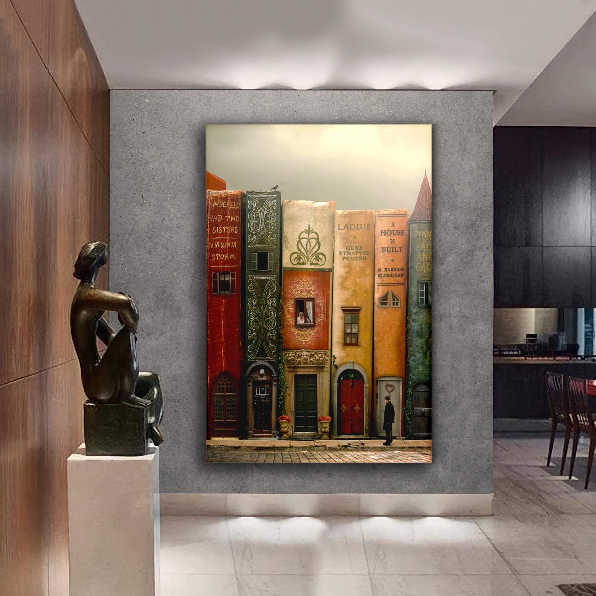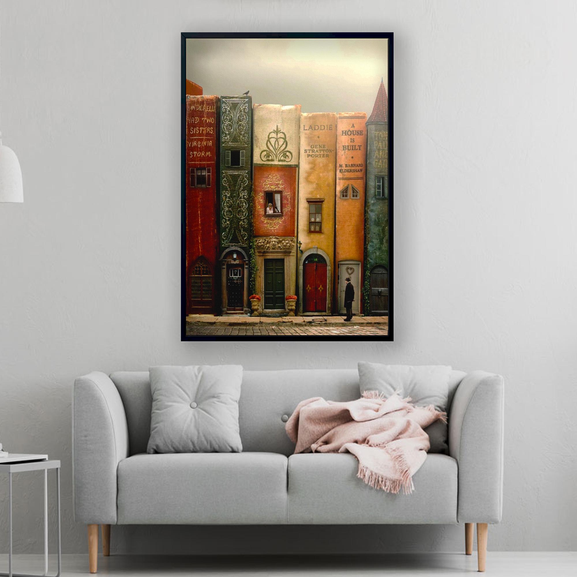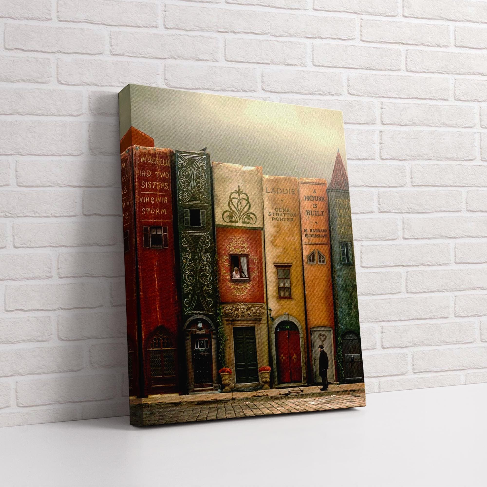 Mike Stilkey Canvas,Literary Street Antique Books Painting, Cozy Reading Nook Art, Book Lovers Gift.