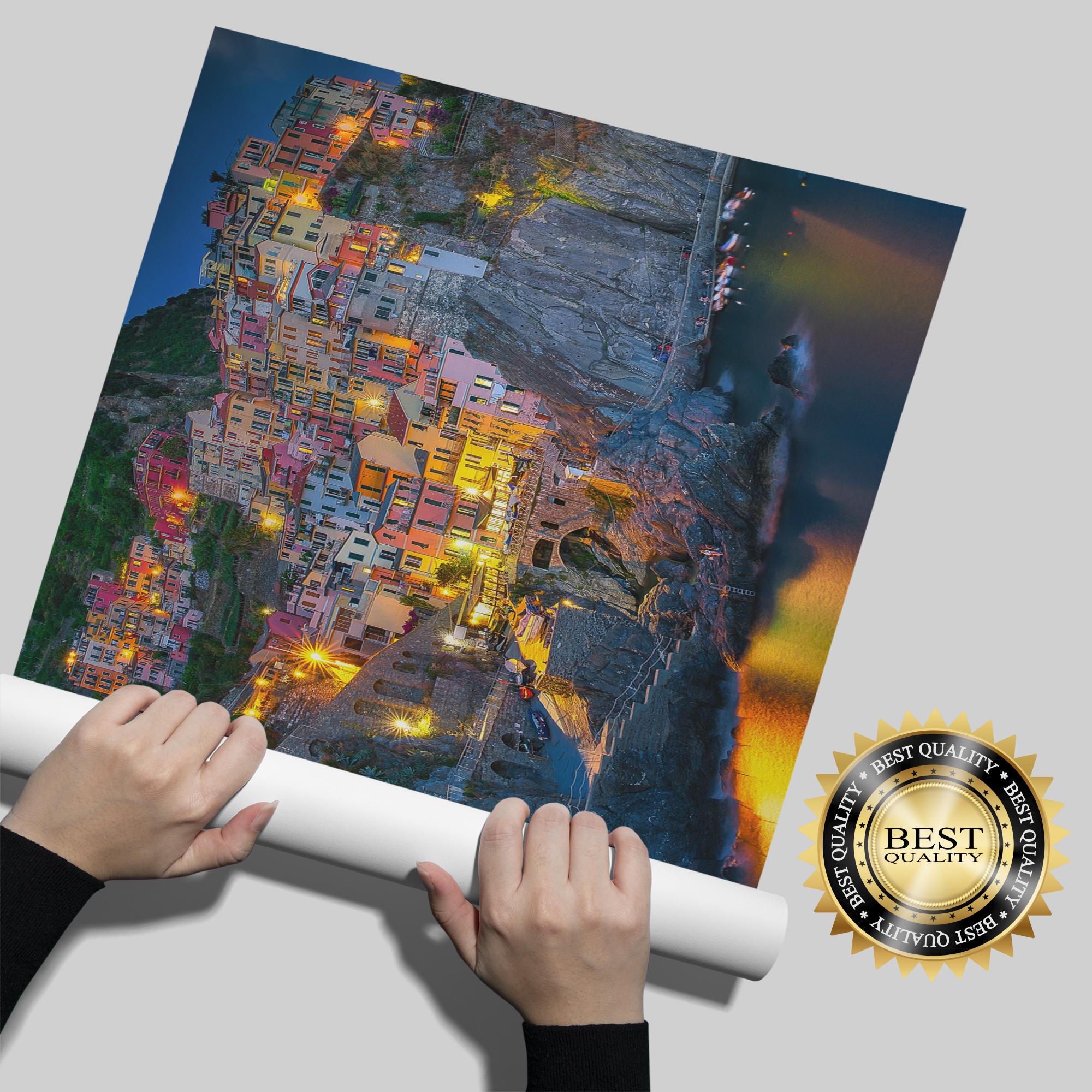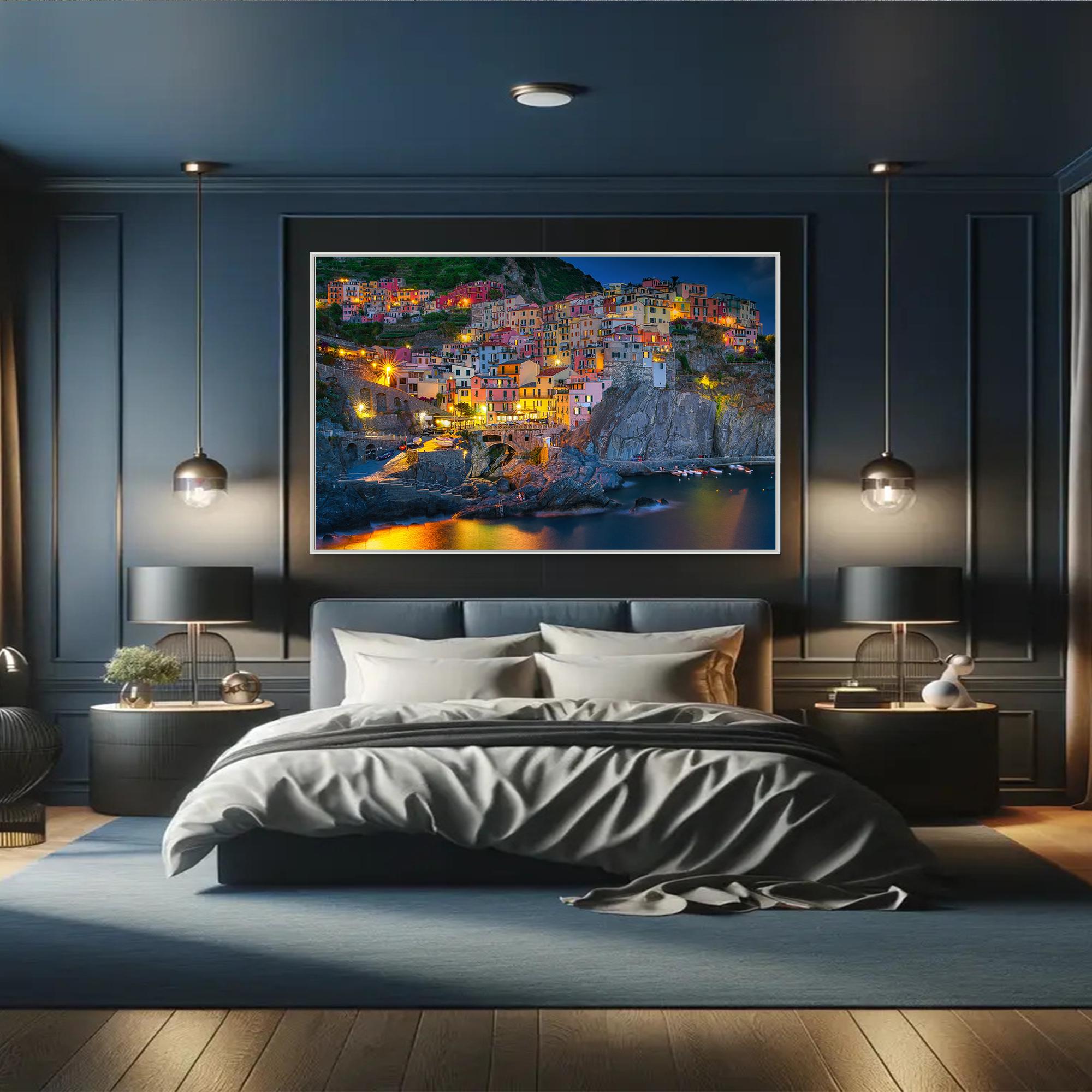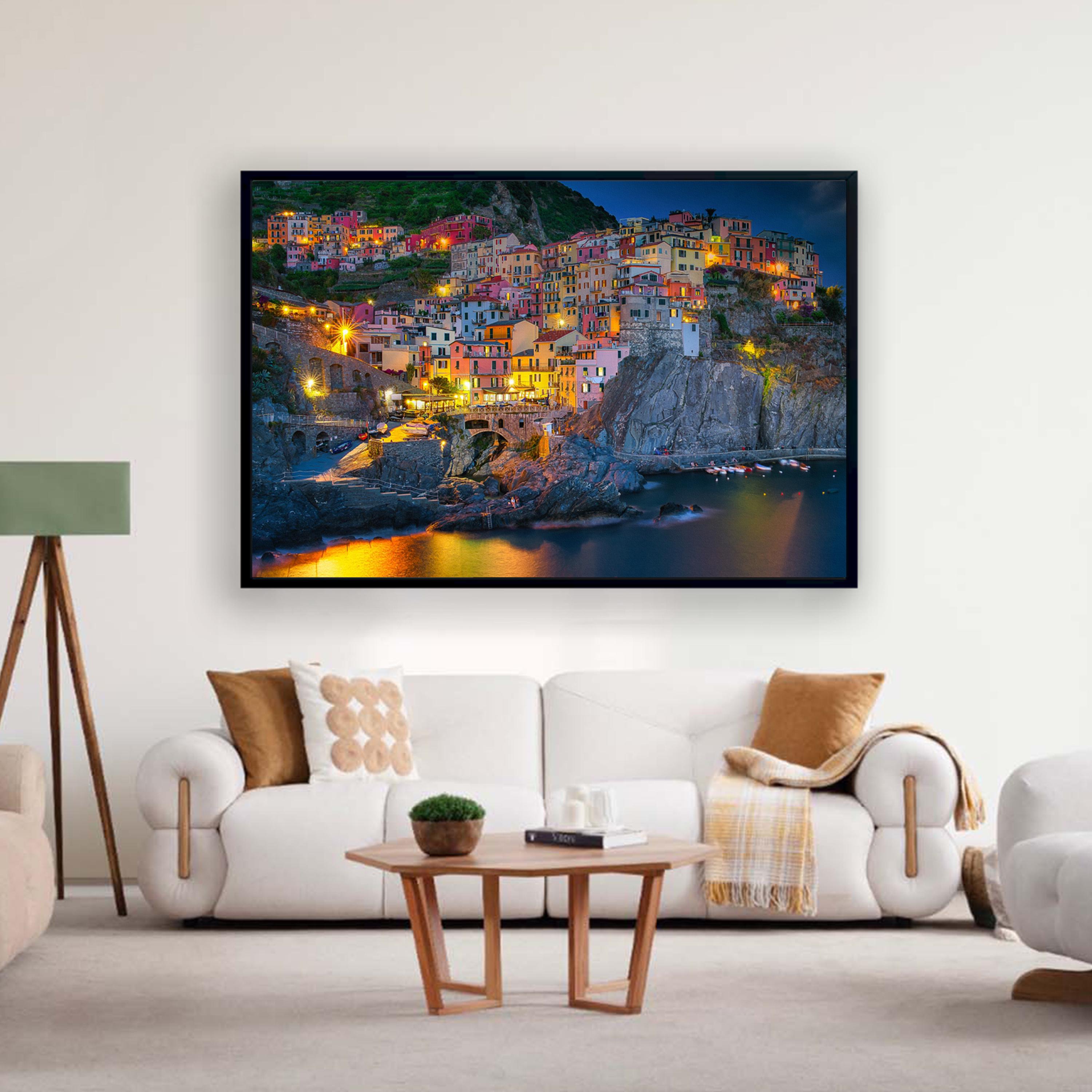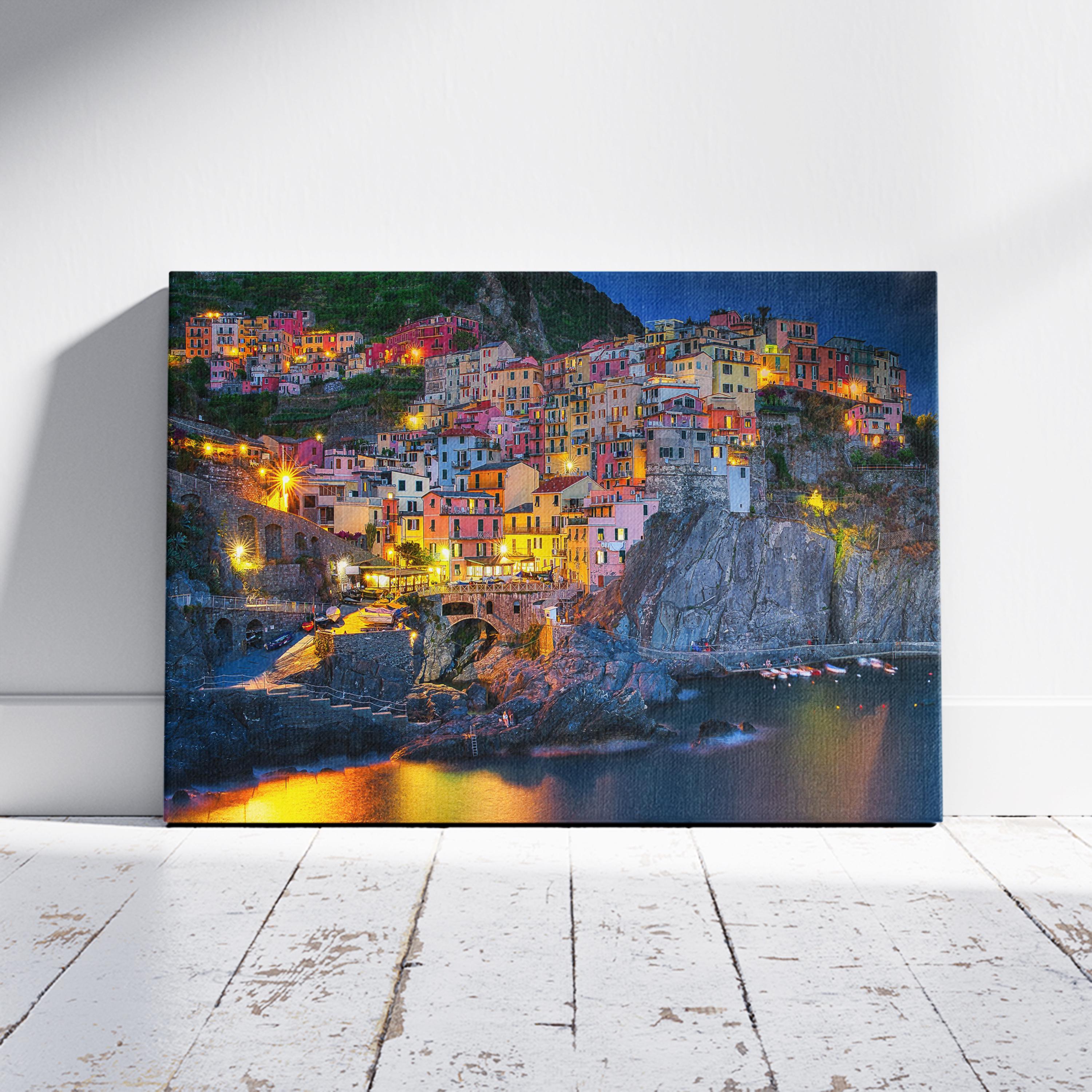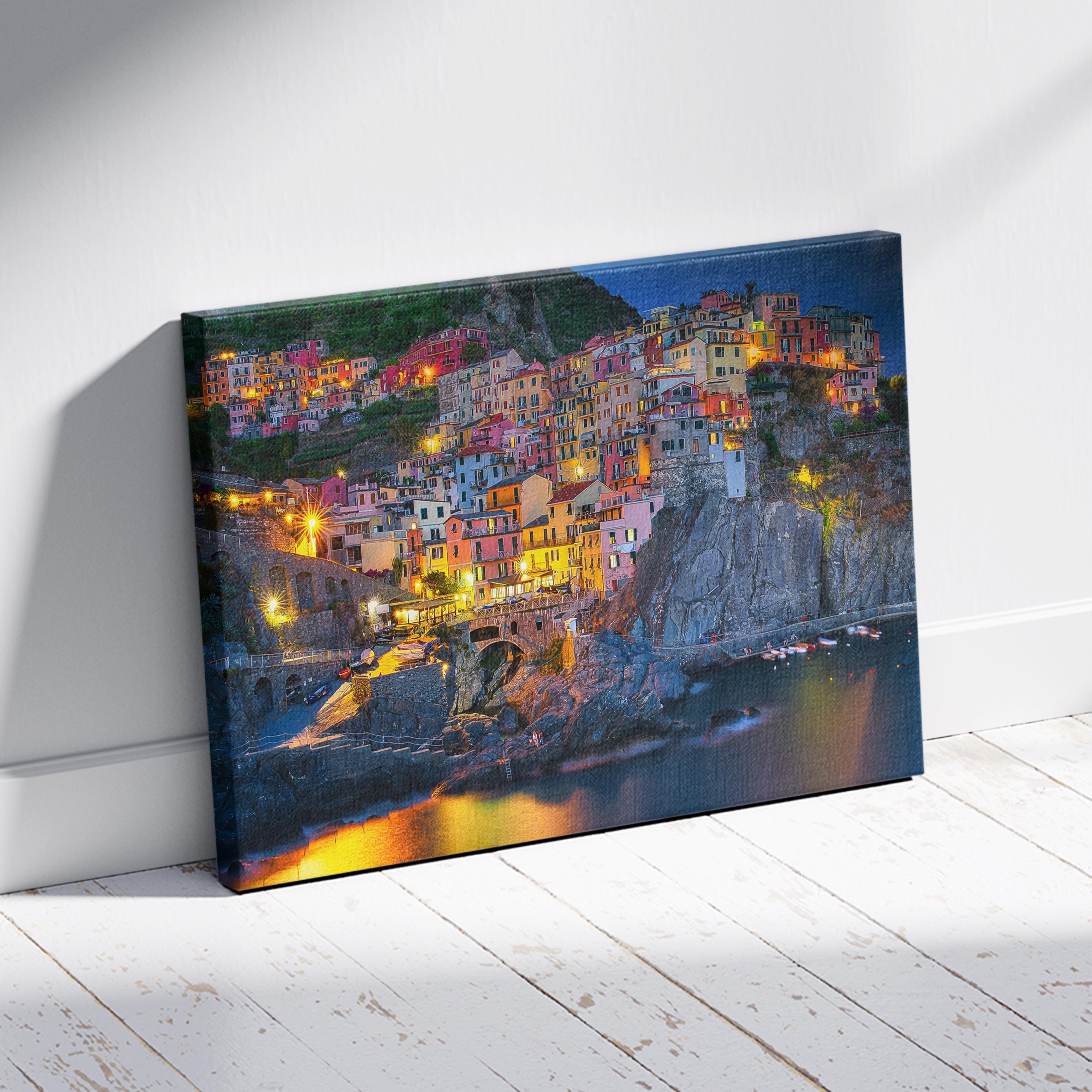 Night time in Manarola, Italy Canvas Print, Italy Home Decor, Italy Photography Wall Art, Italy Wall Decor, Cinque Terre Italy Canvas Print,Ready to Hang.
