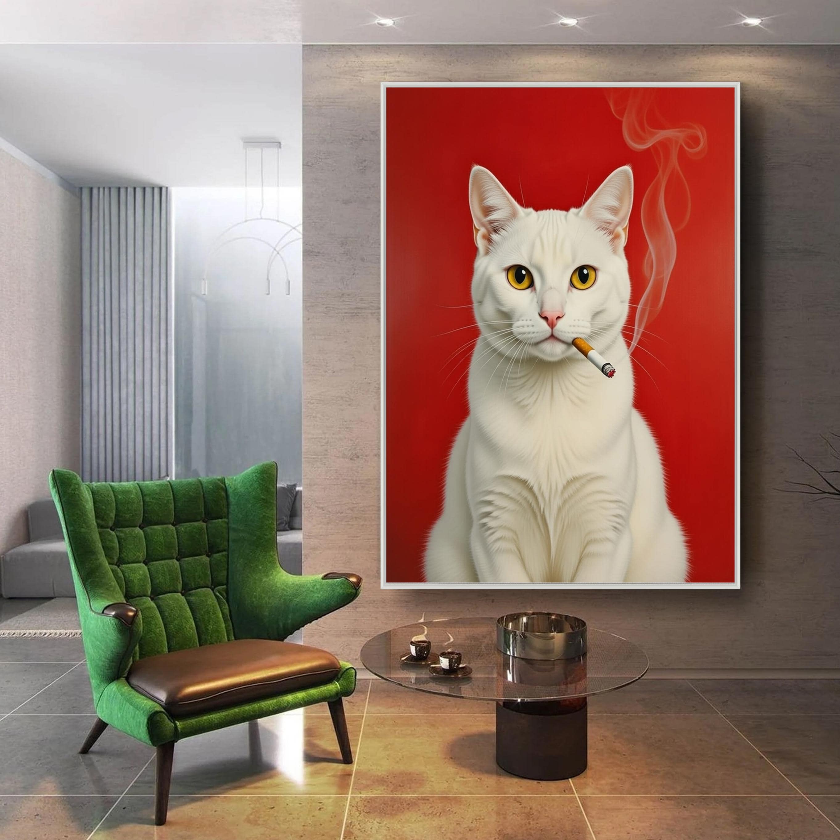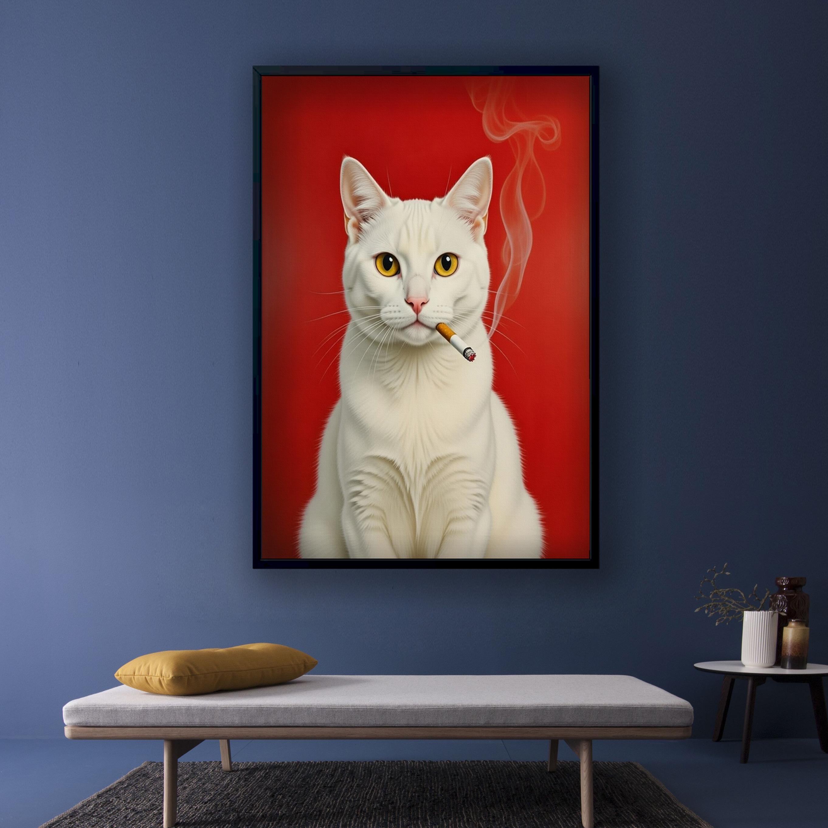 White Cat Canvas Wall Art, Animal Poster, Home Decor, Ready to Hang.