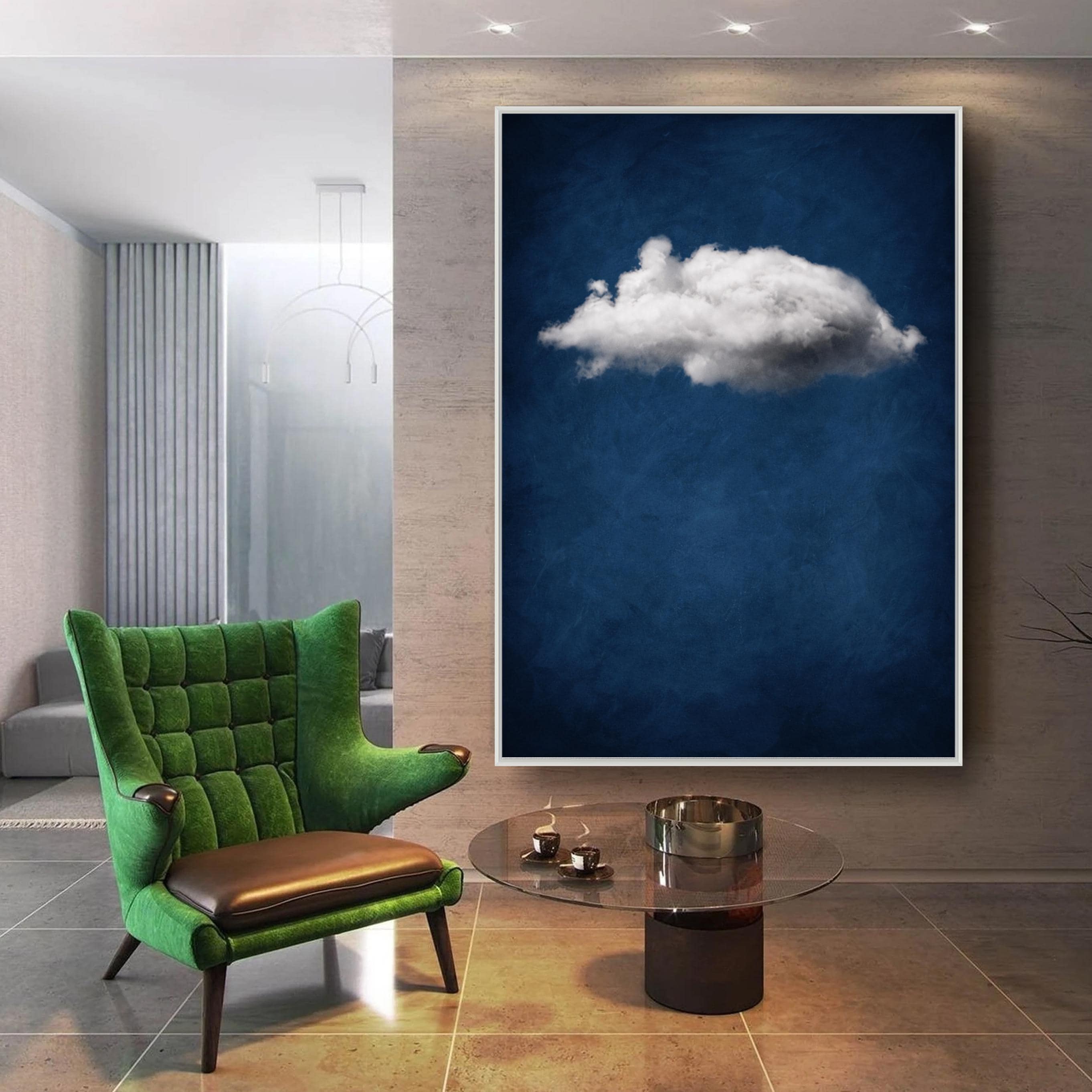 Minimalist Cloud Canvas Wall Art, Abstract Blue Poster, Ready to Hang.