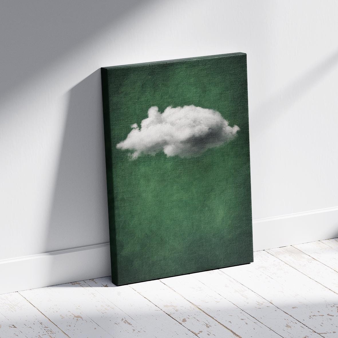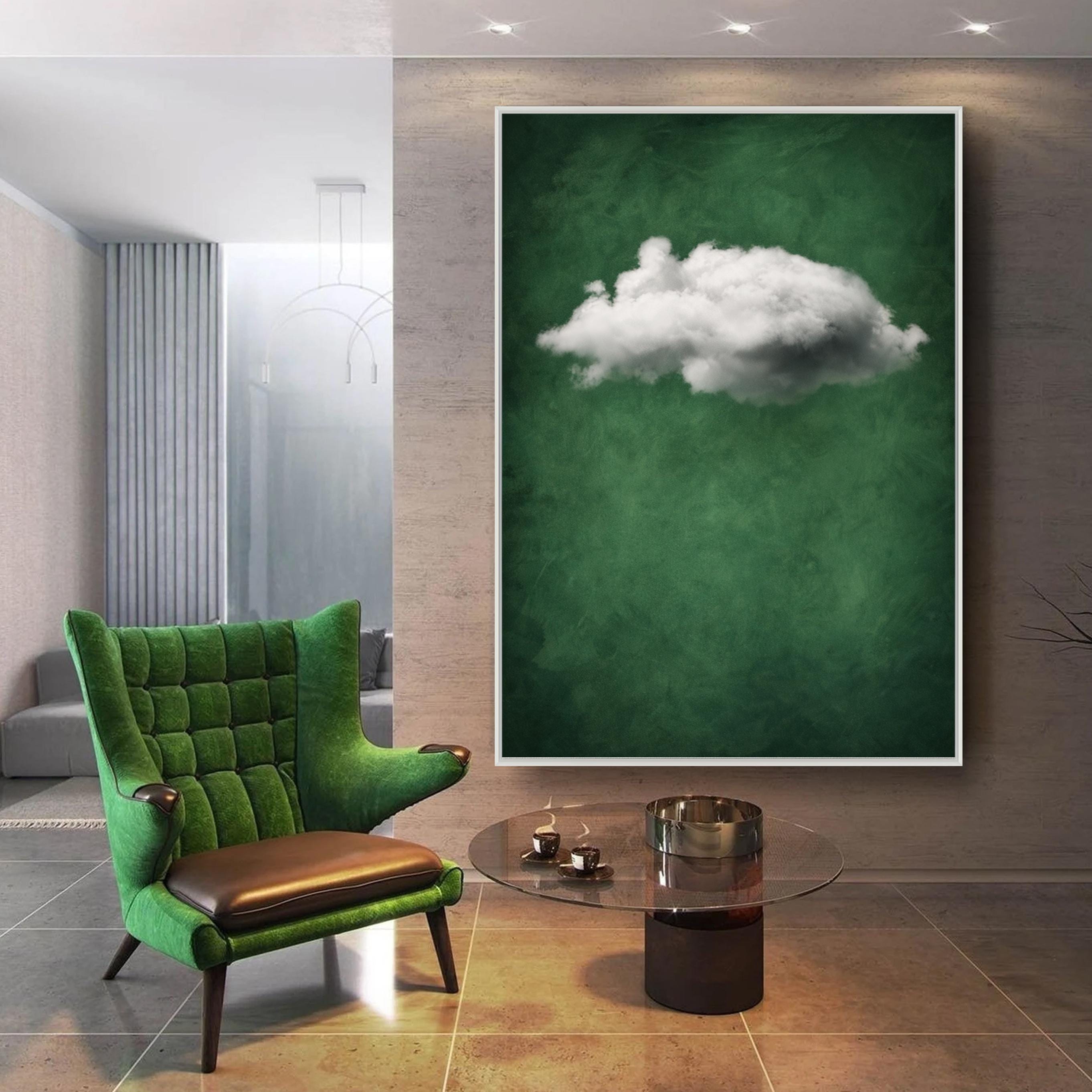 Minimalist Cloud Canvas Wall Art, Abstract Green Poster, Ready to Hang.