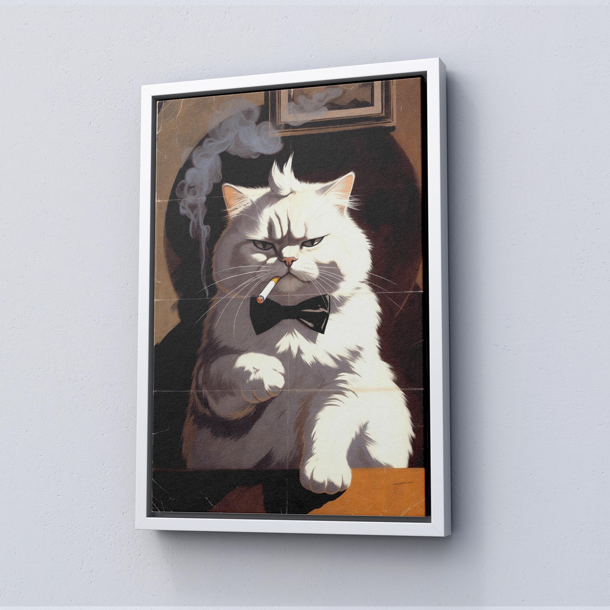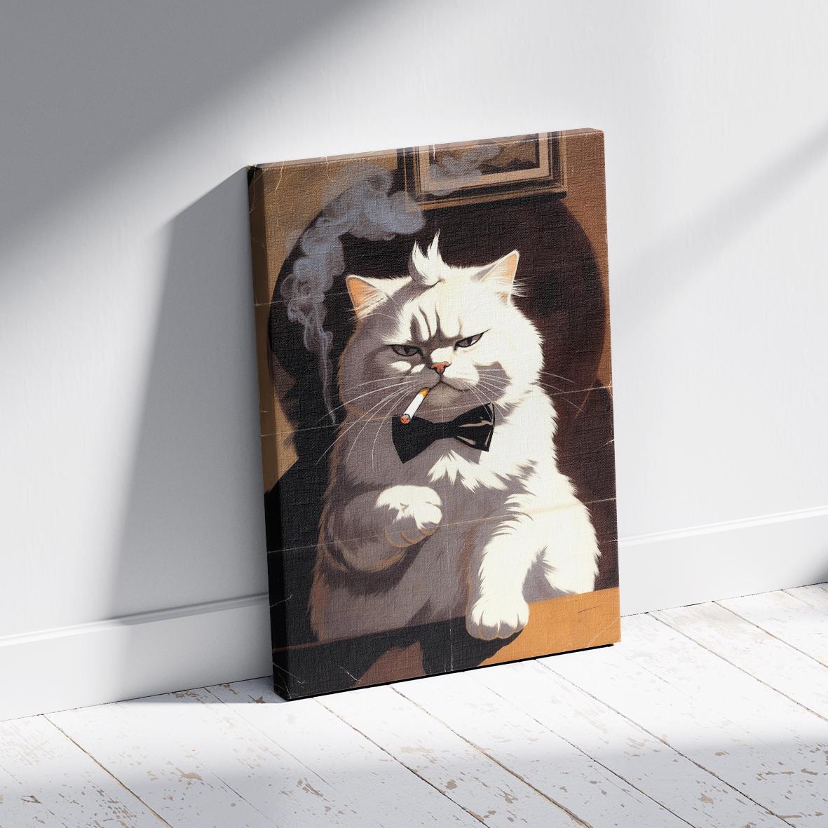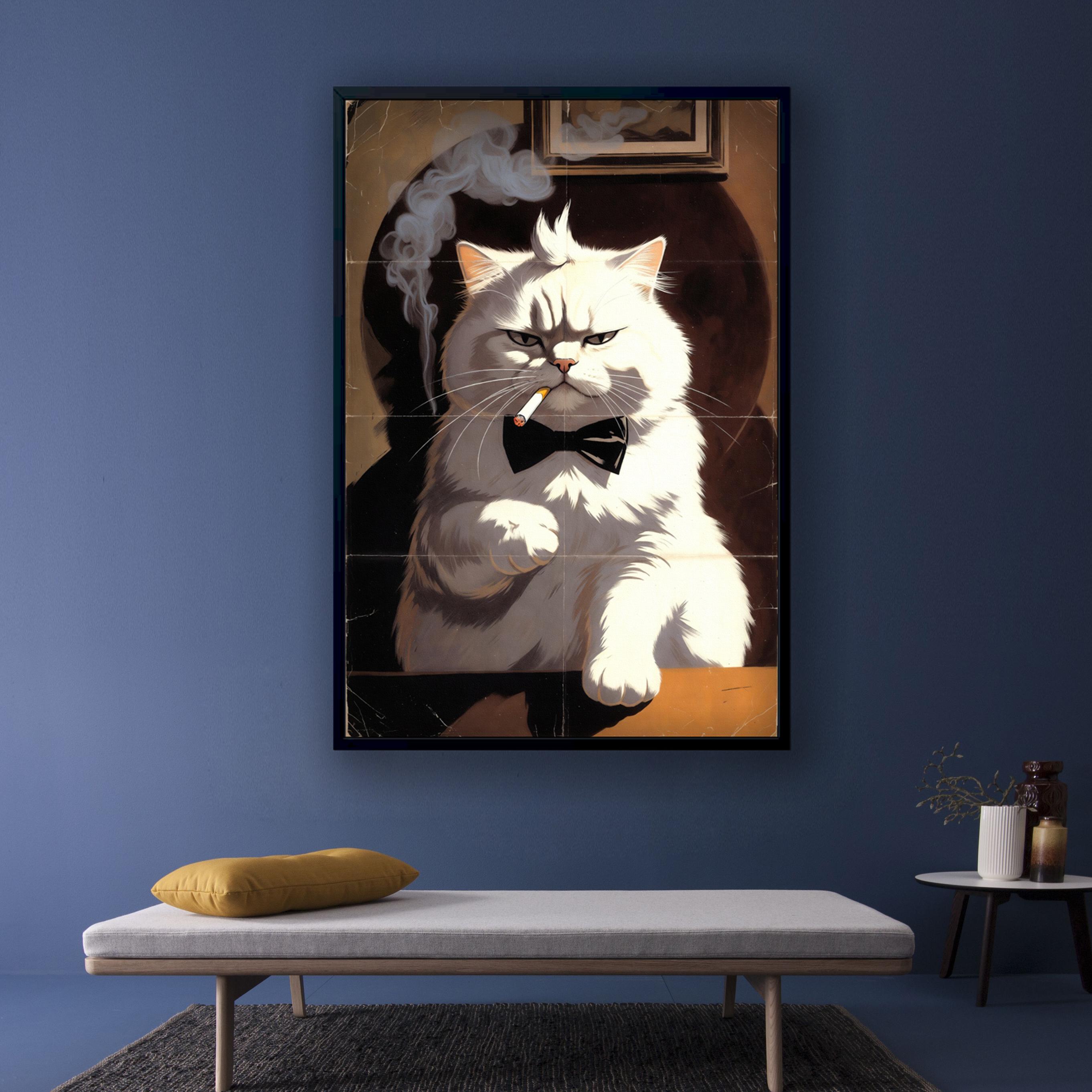 Smoking White Cat Canvas Wall Art, Animal Poster, Home Decor, Ready to Hang.