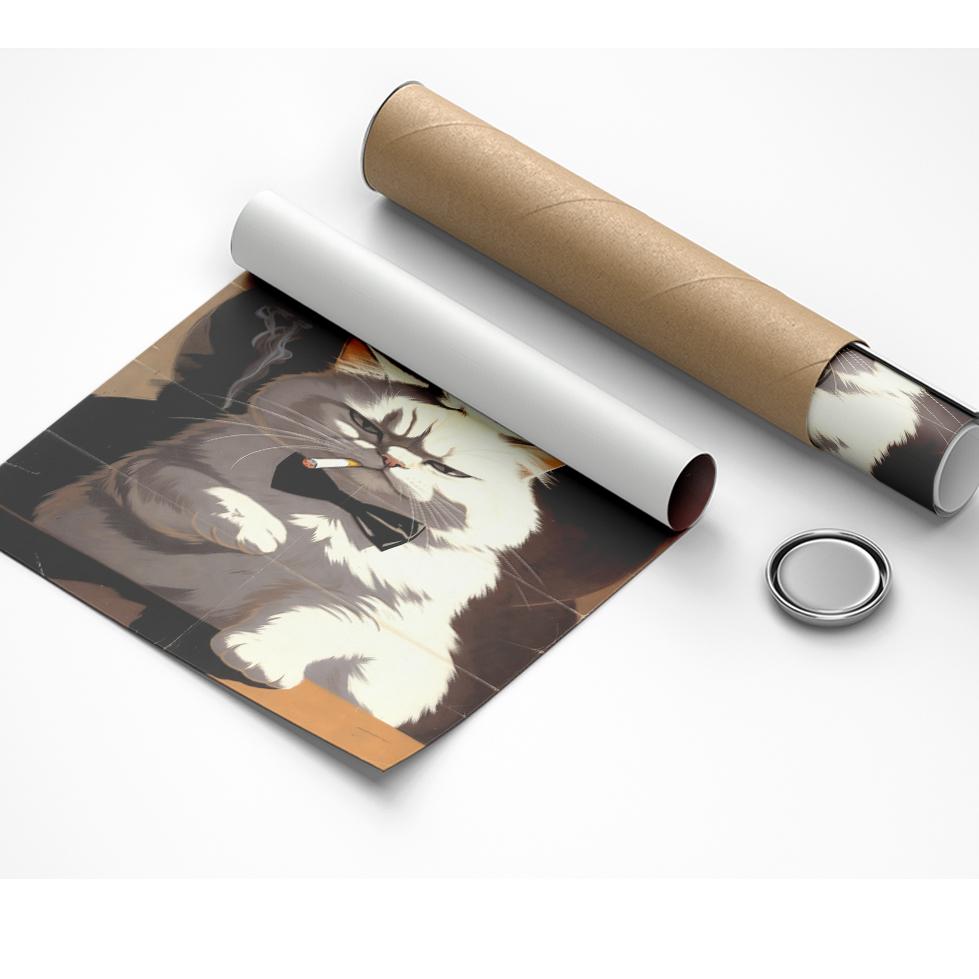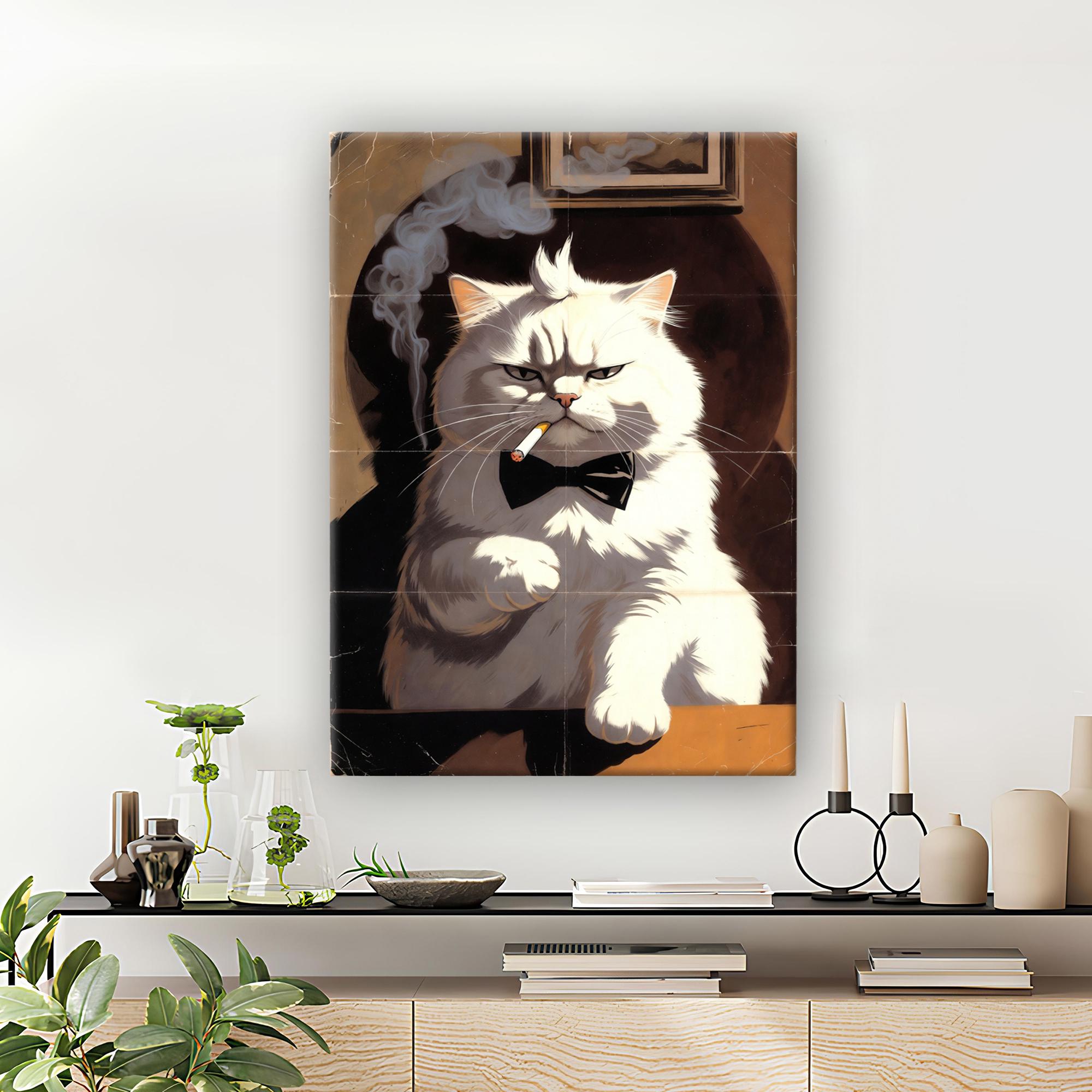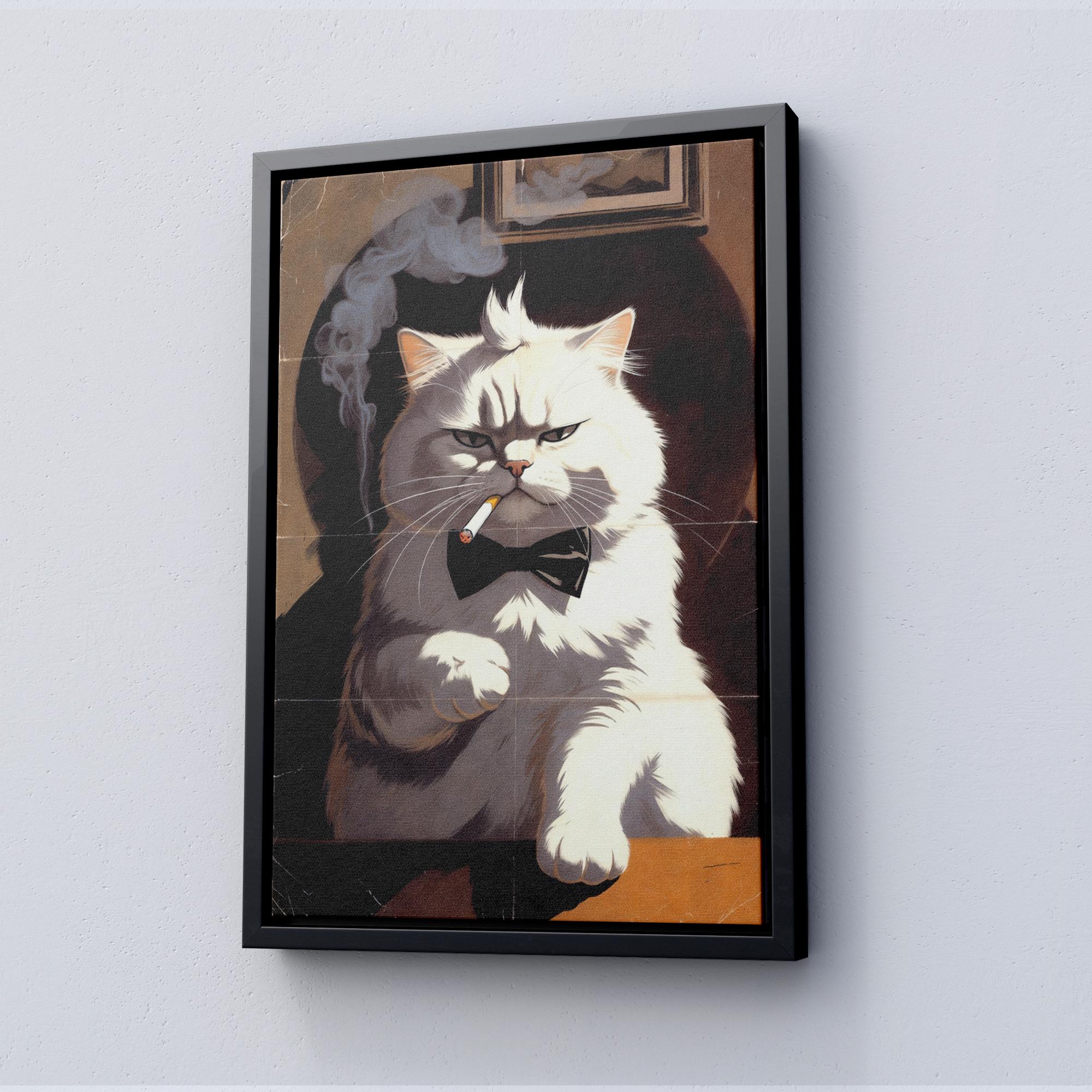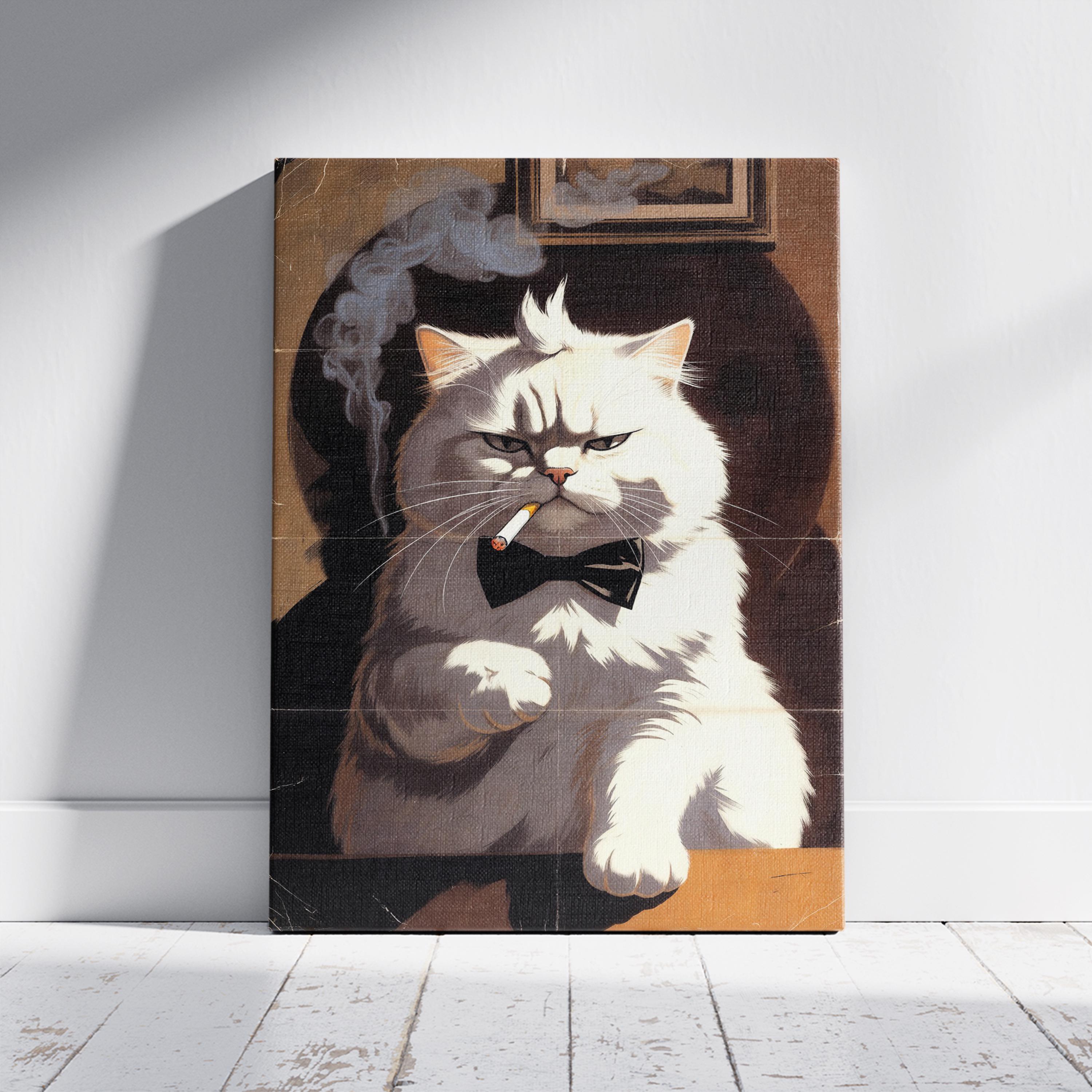 Smoking White Cat Canvas Wall Art, Animal Poster, Home Decor, Ready to Hang.
