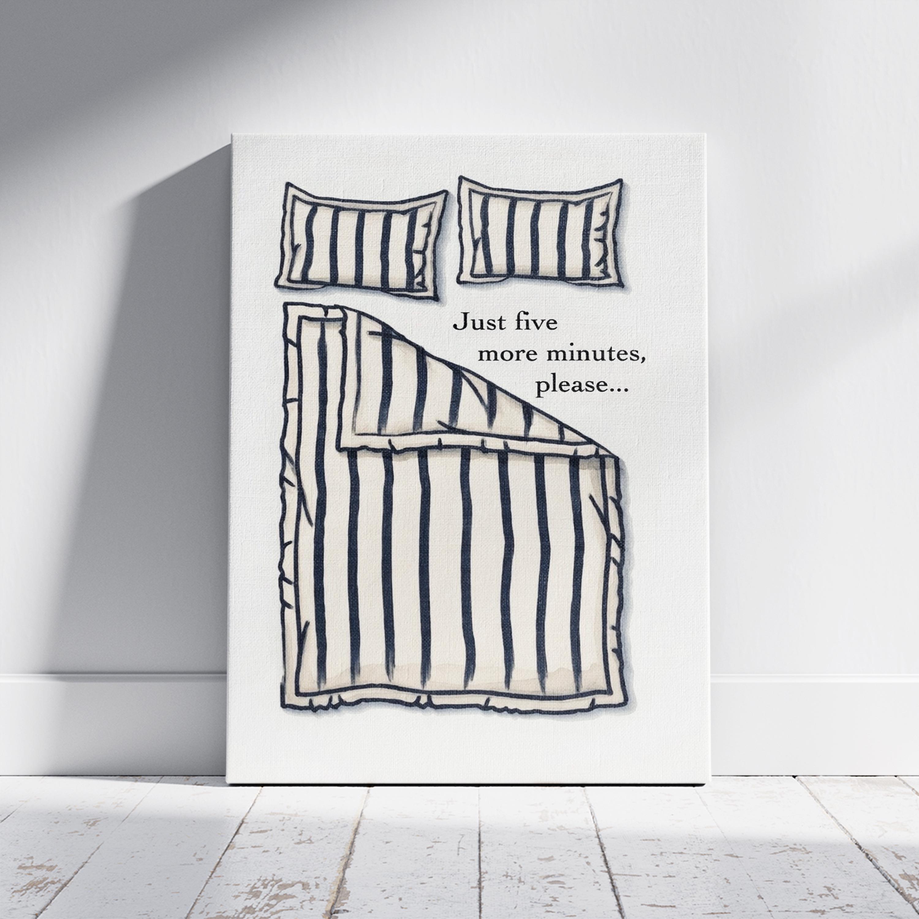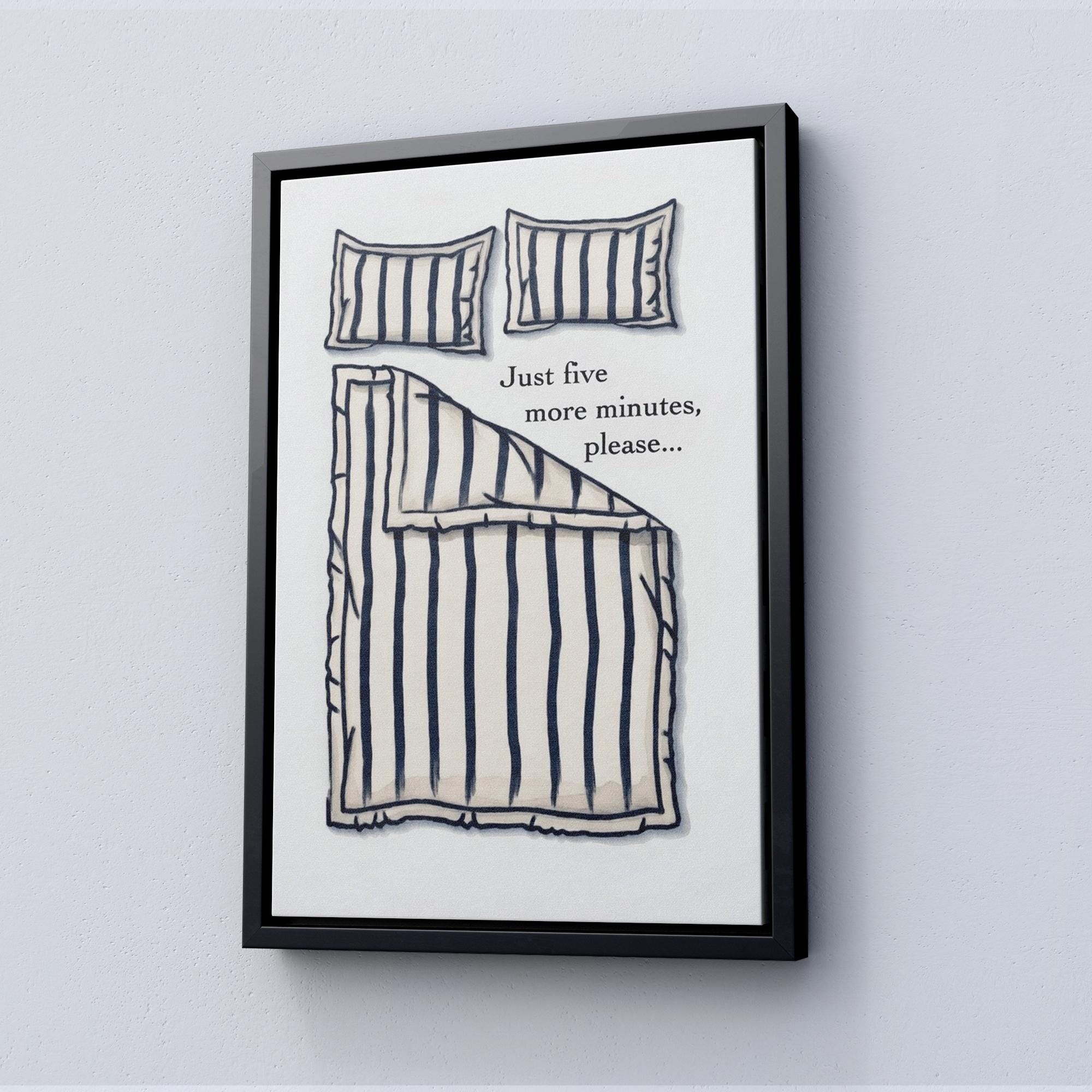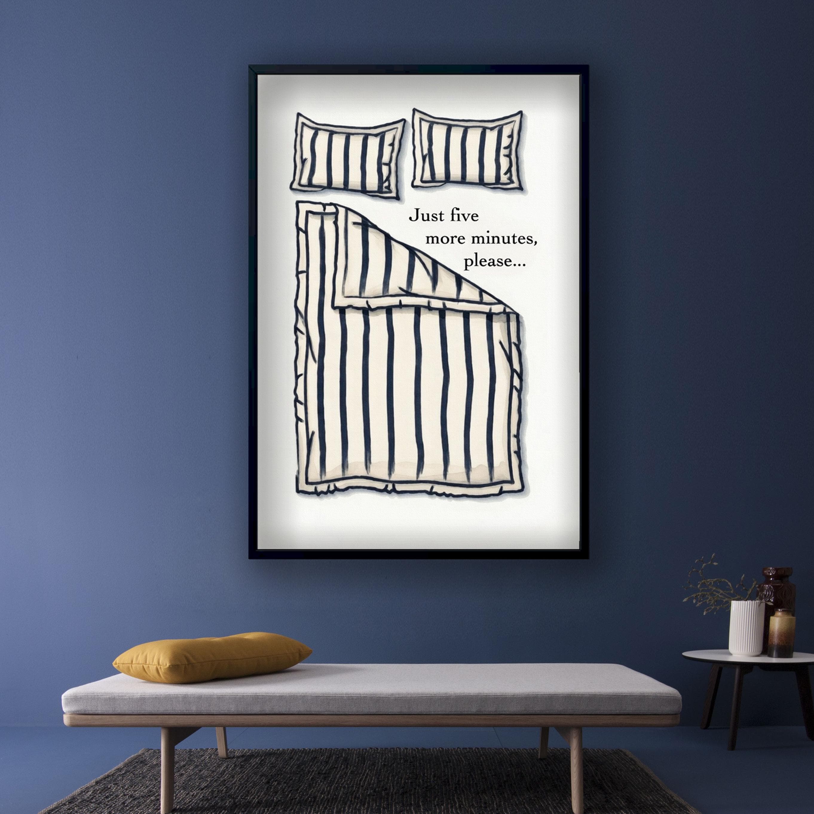 Just 5 more minutes print, Hand Drawn Bedroom Art, Funny Stay in Bed Poster, Ready to Hang.