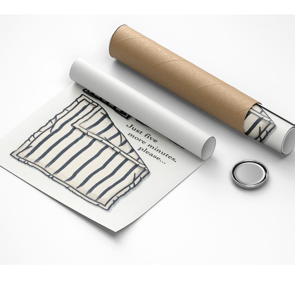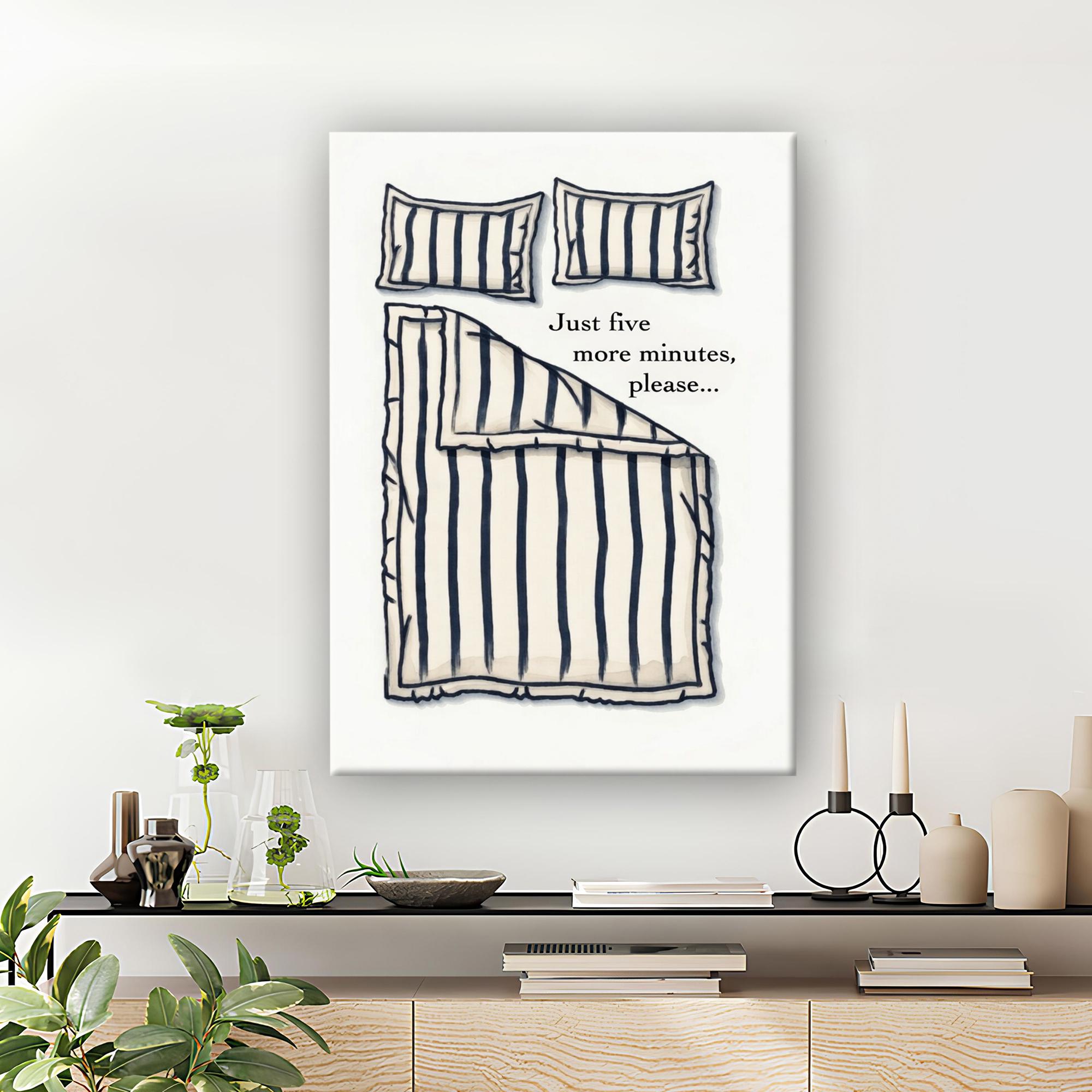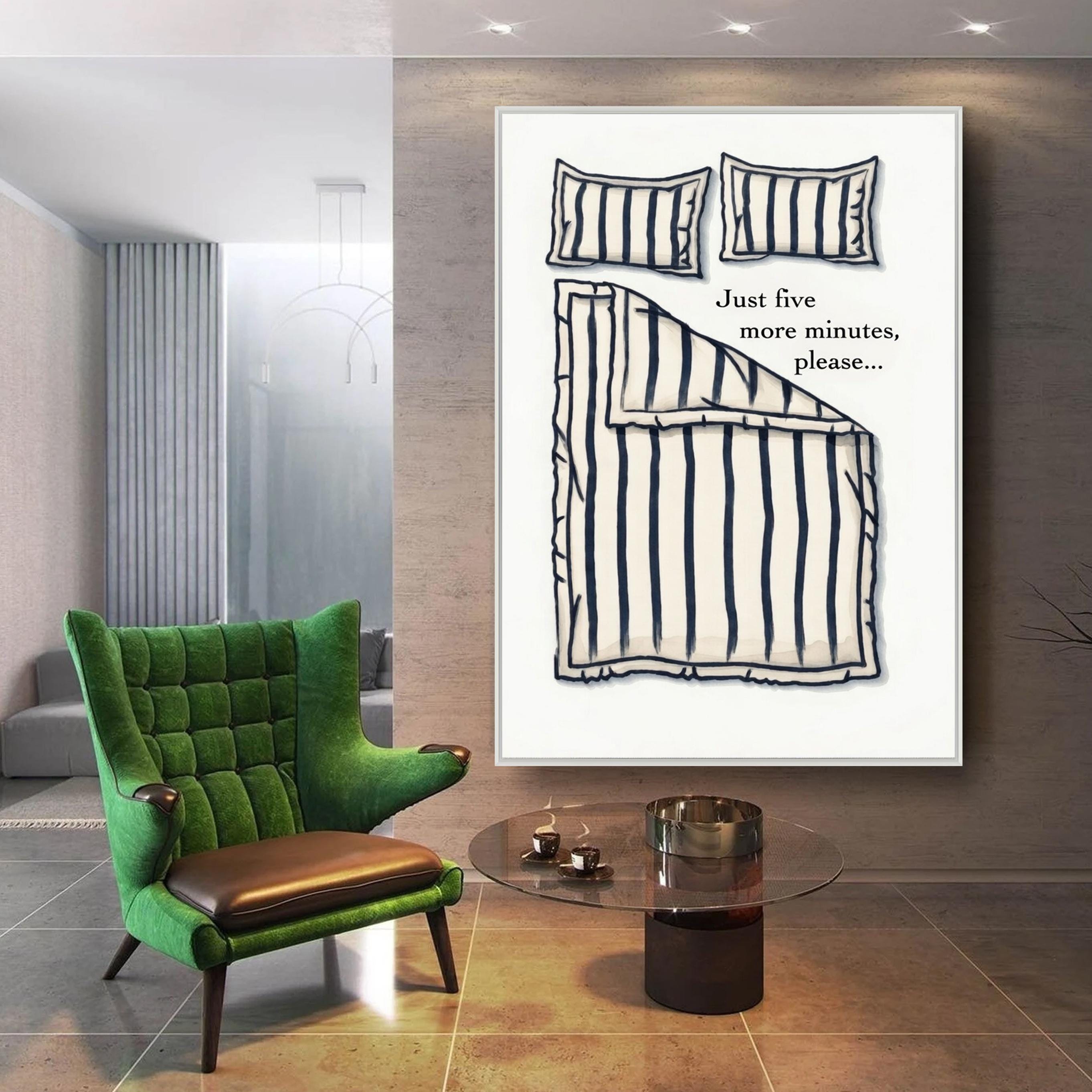 Just 5 more minutes print, Hand Drawn Bedroom Art, Funny Stay in Bed Poster, Ready to Hang.