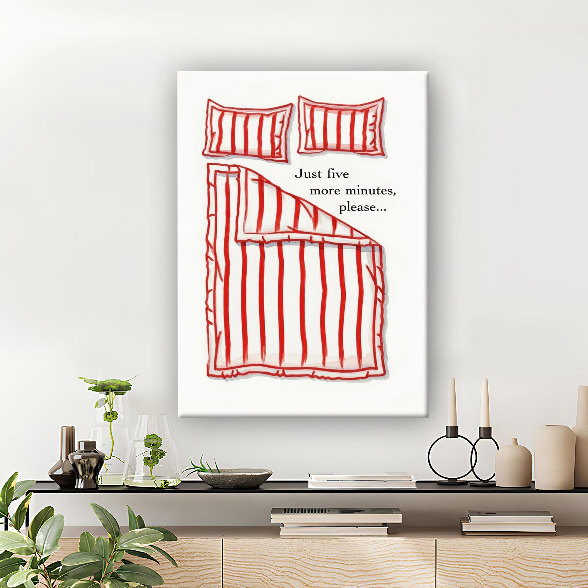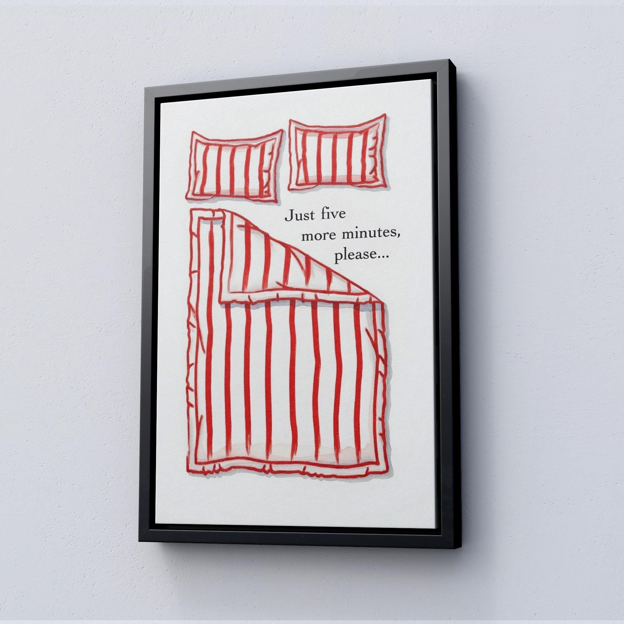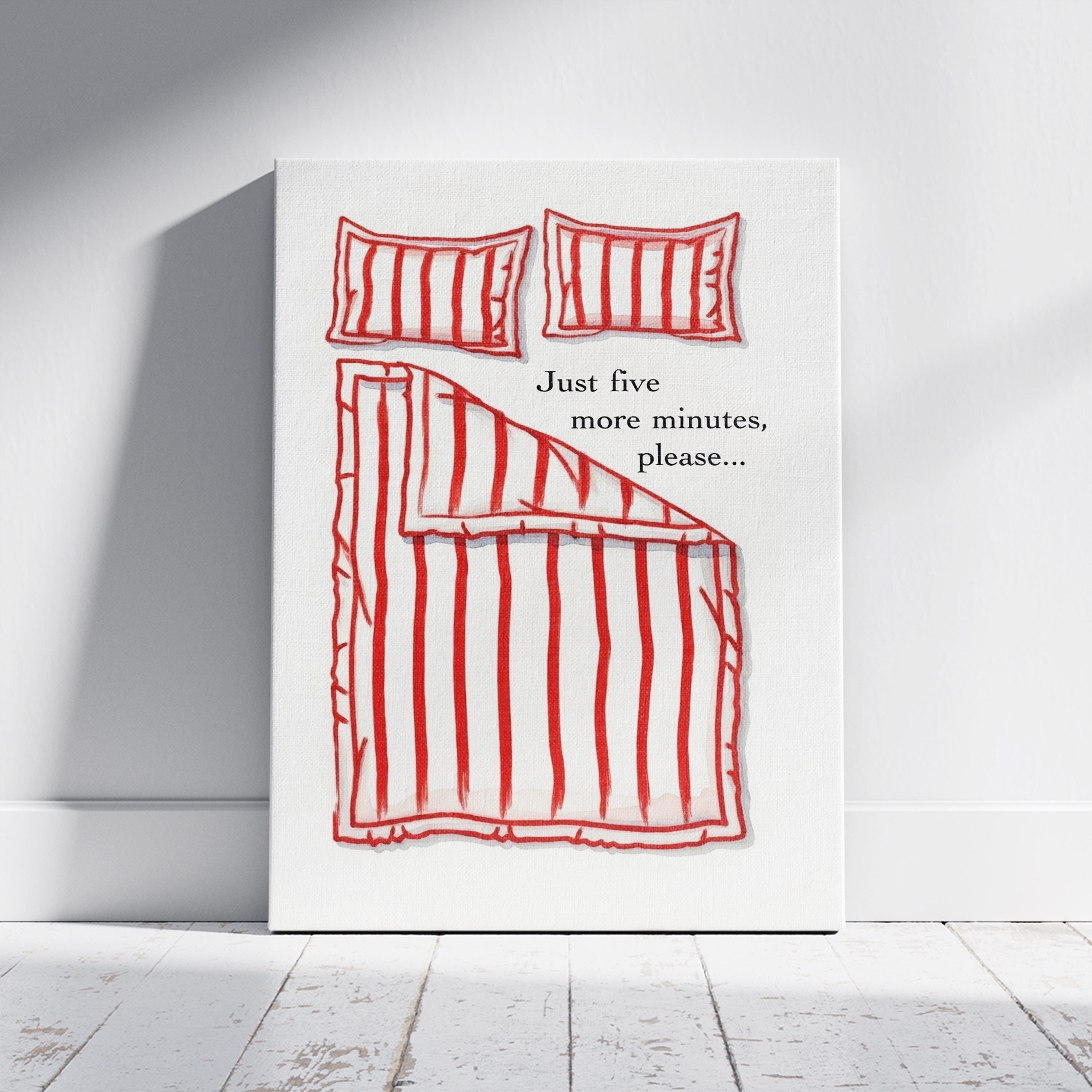 Just 5 more minutes Canvas, Hand Drawn Bedroom Art, Funny Stay in Bed Poster, Ready to Hang.