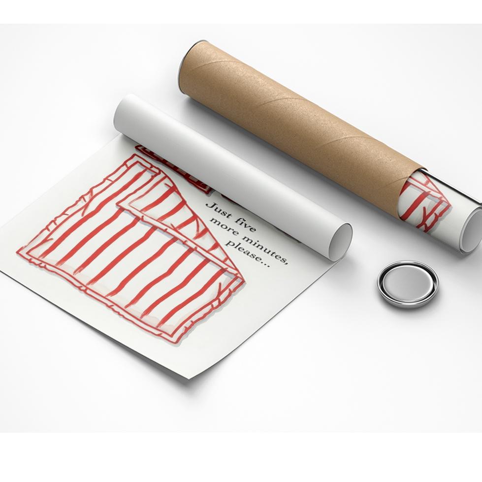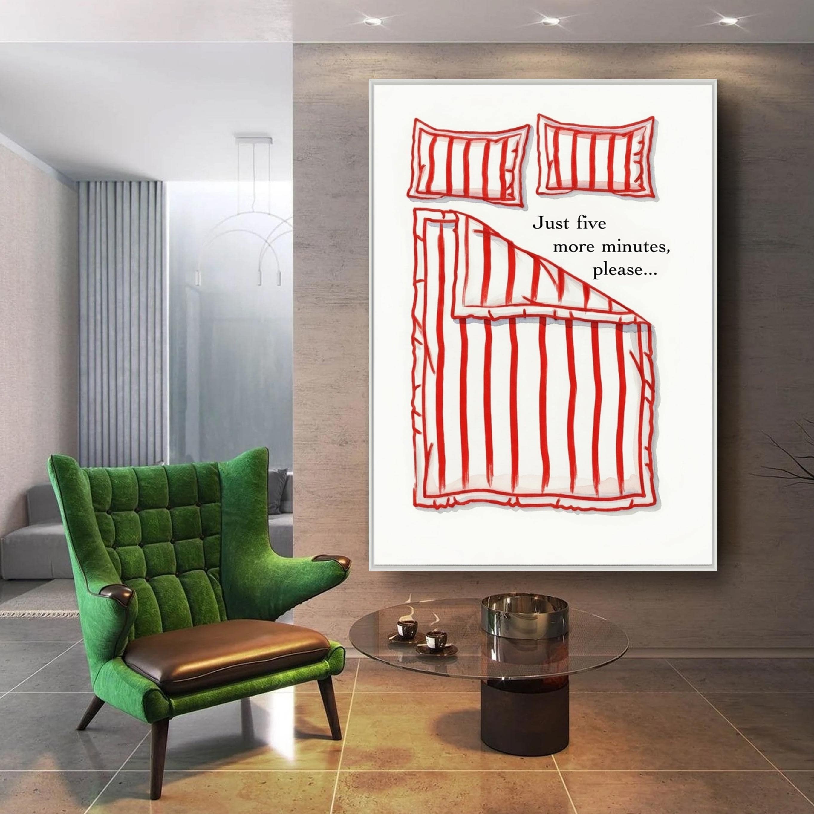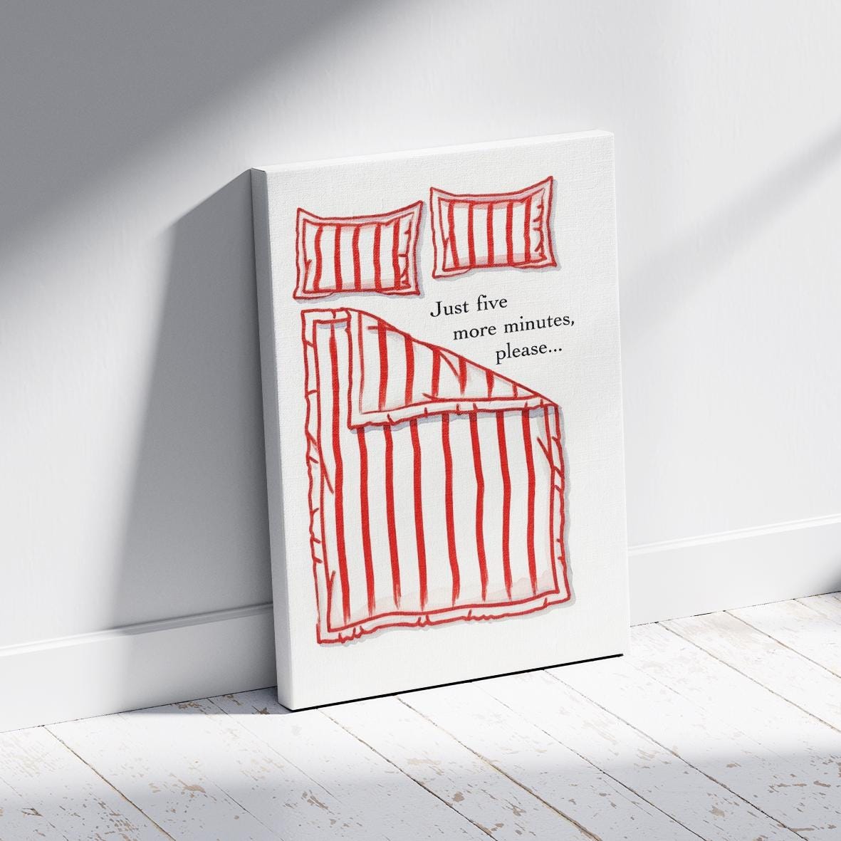 Just 5 more minutes Canvas, Hand Drawn Bedroom Art, Funny Stay in Bed Poster, Ready to Hang.