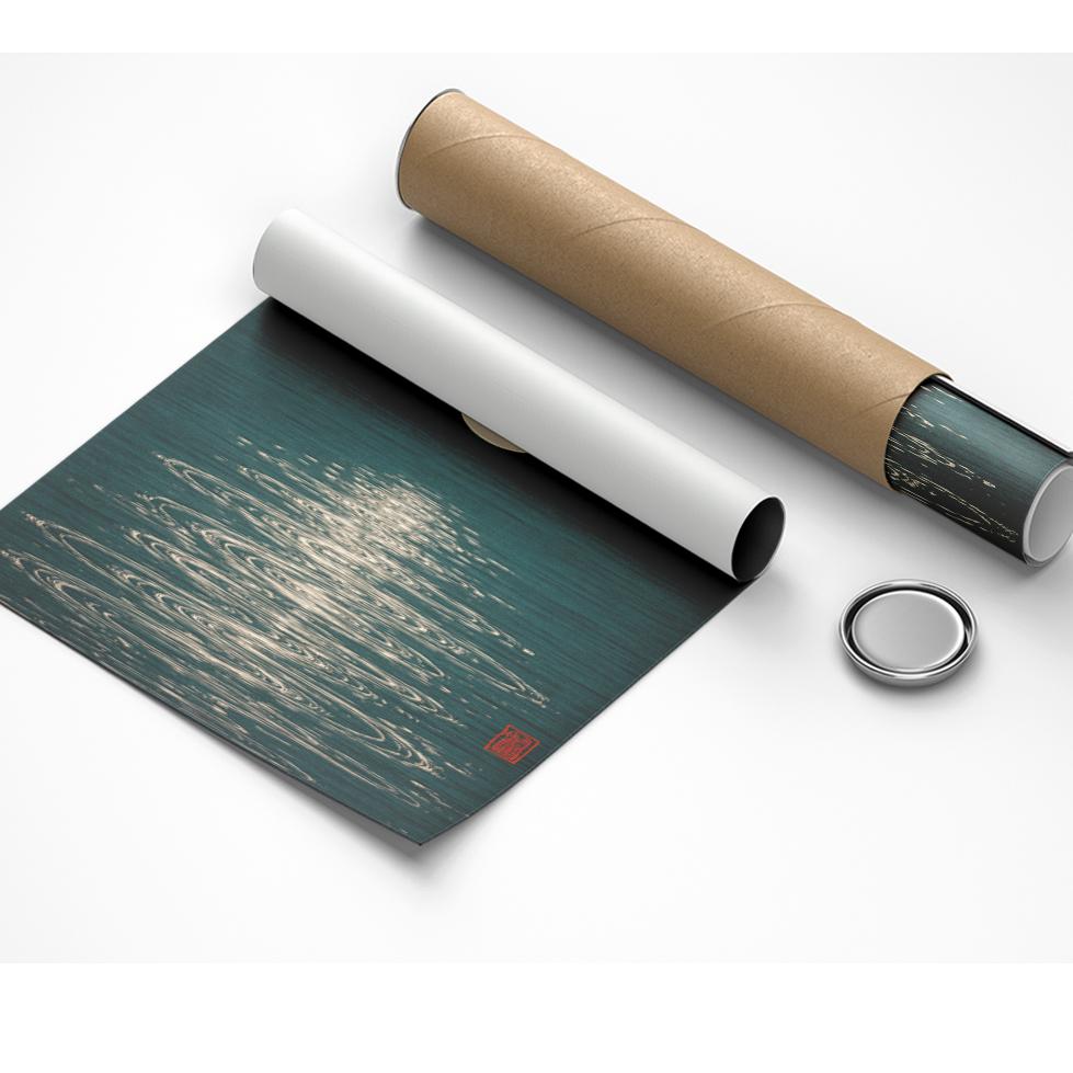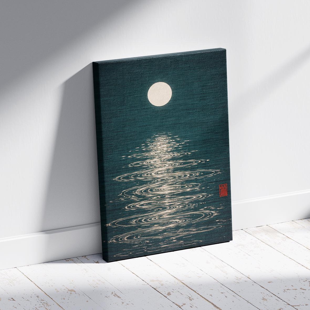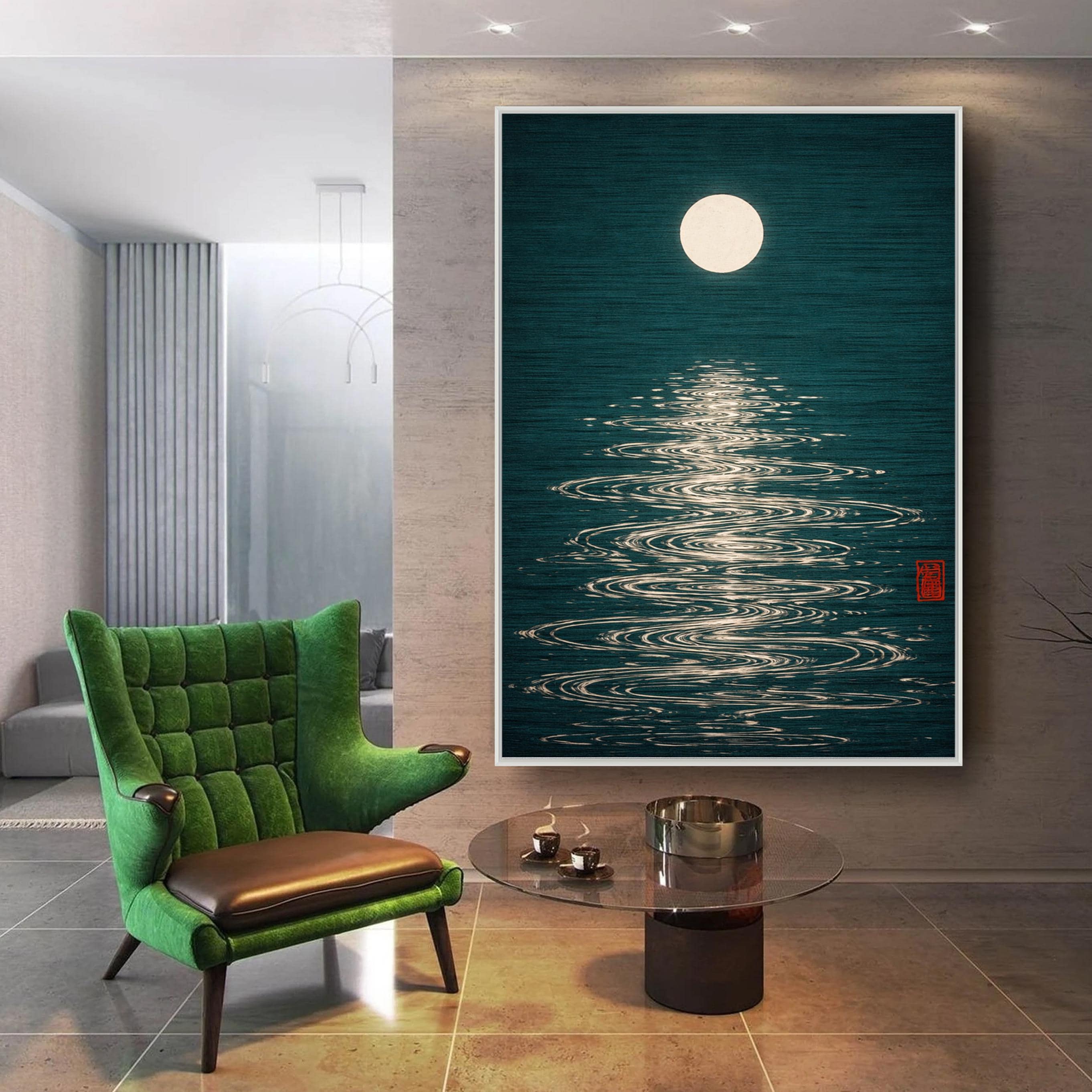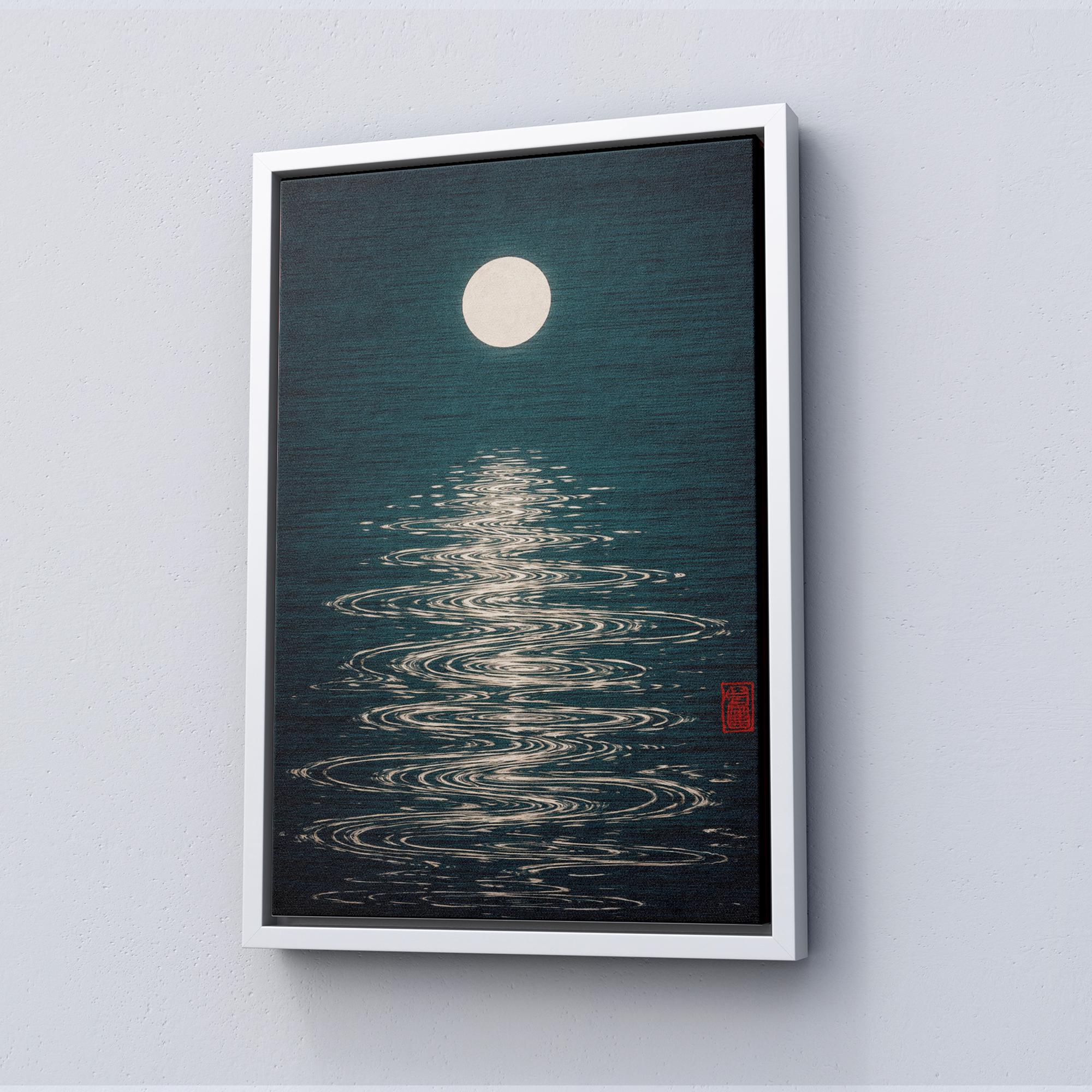 Moon Reflection Poster, Japanese Minimalist Art Print, Retro Night Sky Wall Art, Mid Century Modern Decor, Vintage Zen Poster Design, Ready to Hang.