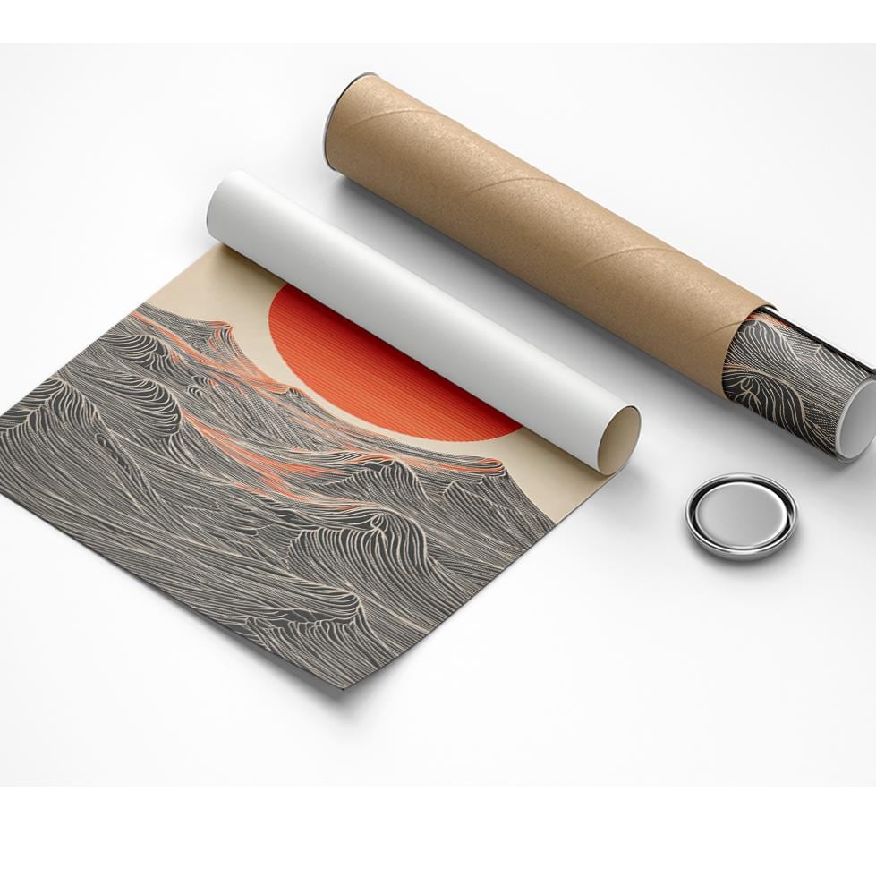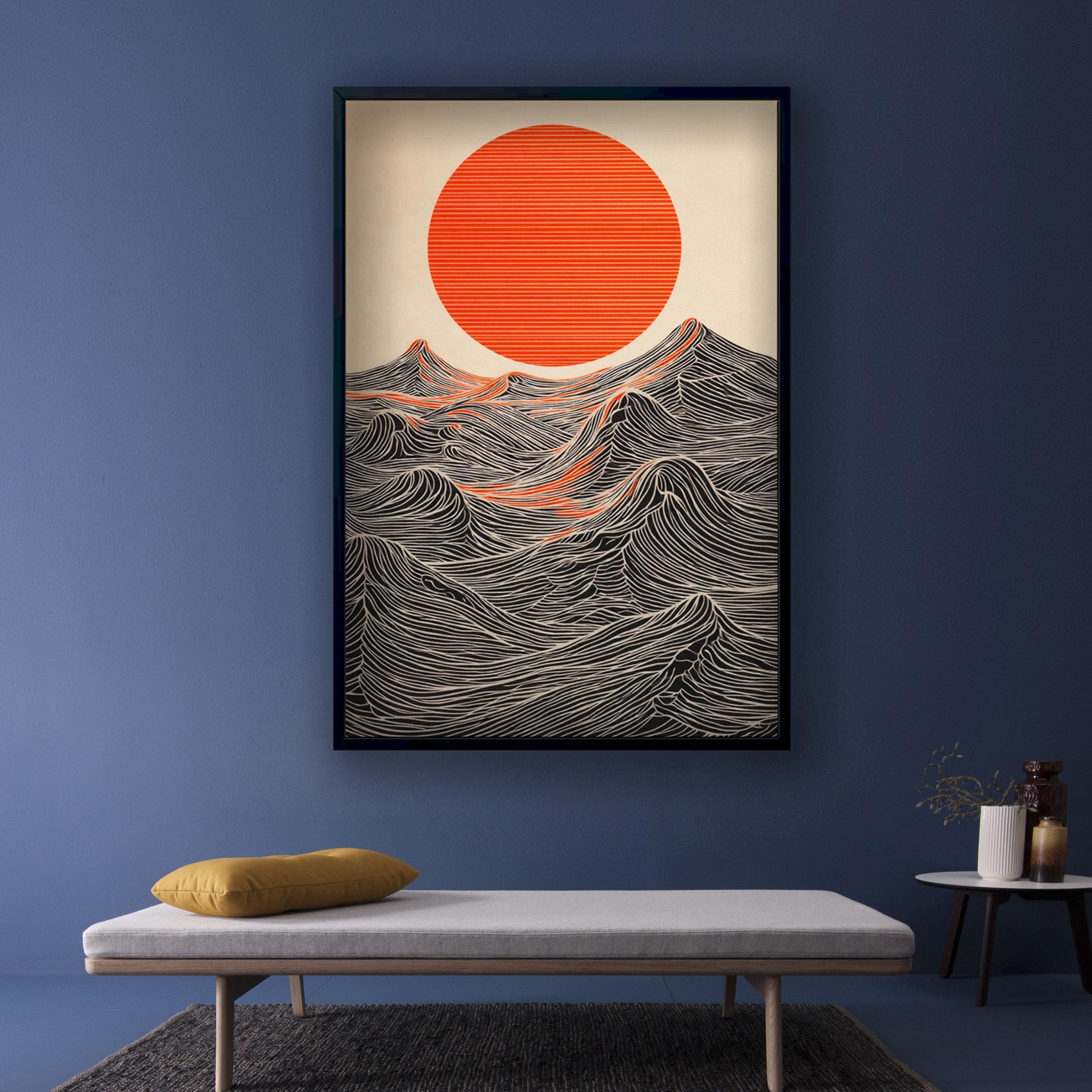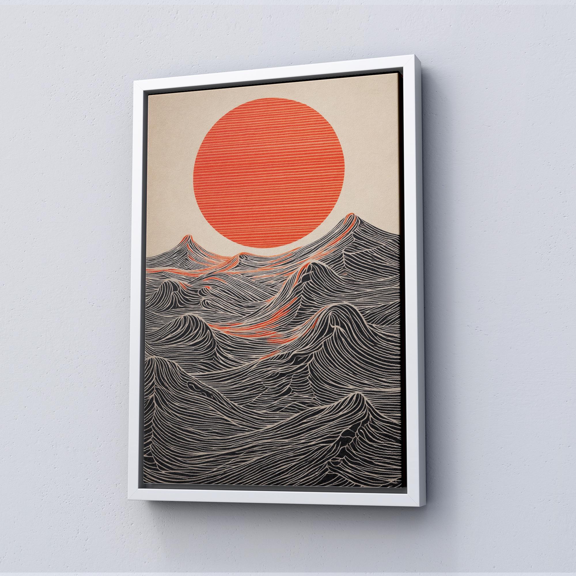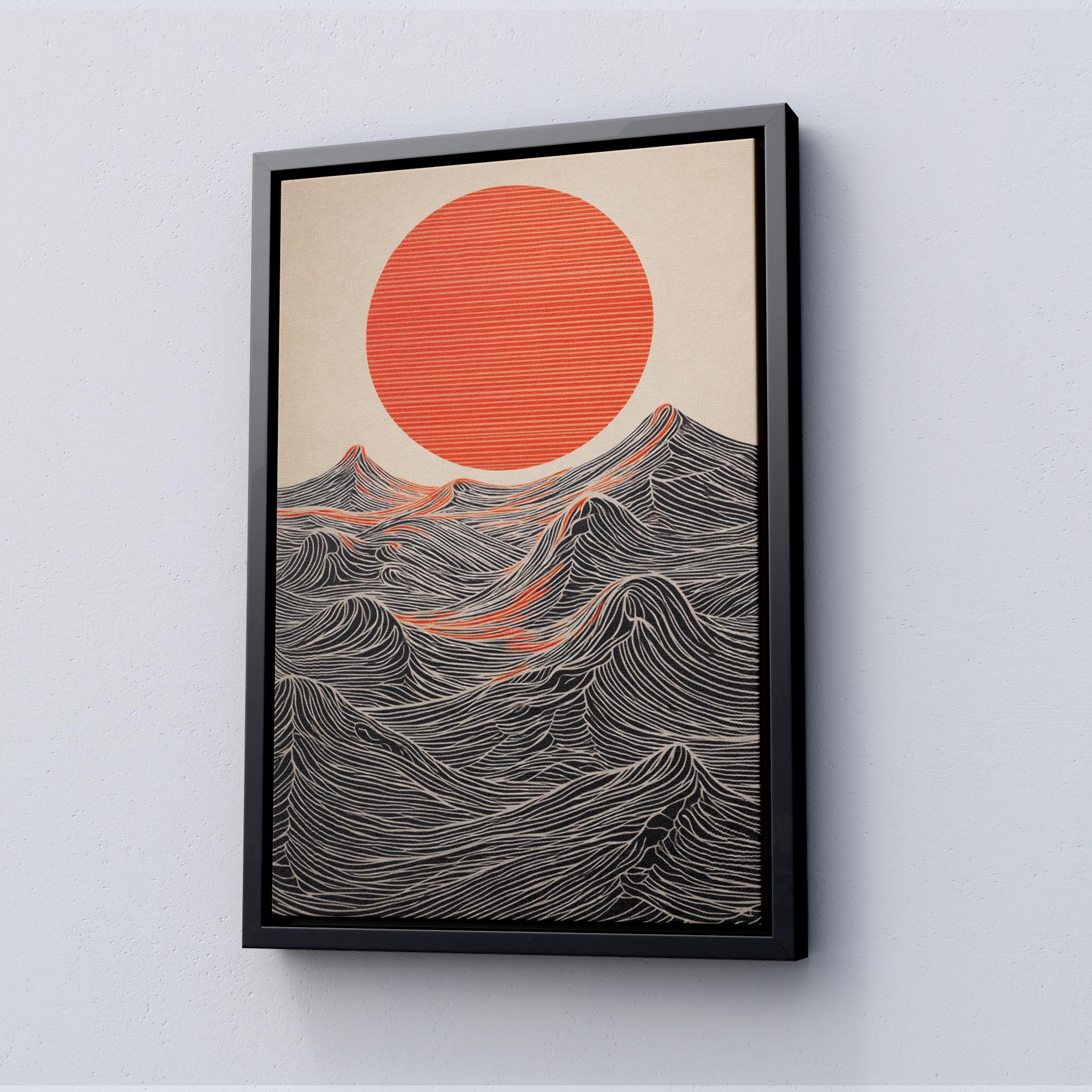 Sun and Waves Canvas Wall Art, Modern Minimalist Ocean Poster, Abstract Japanese Style Artwork, Ready to Hang.