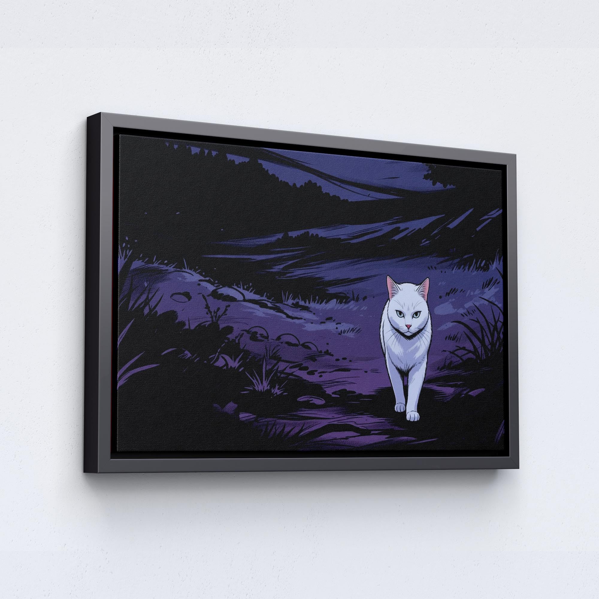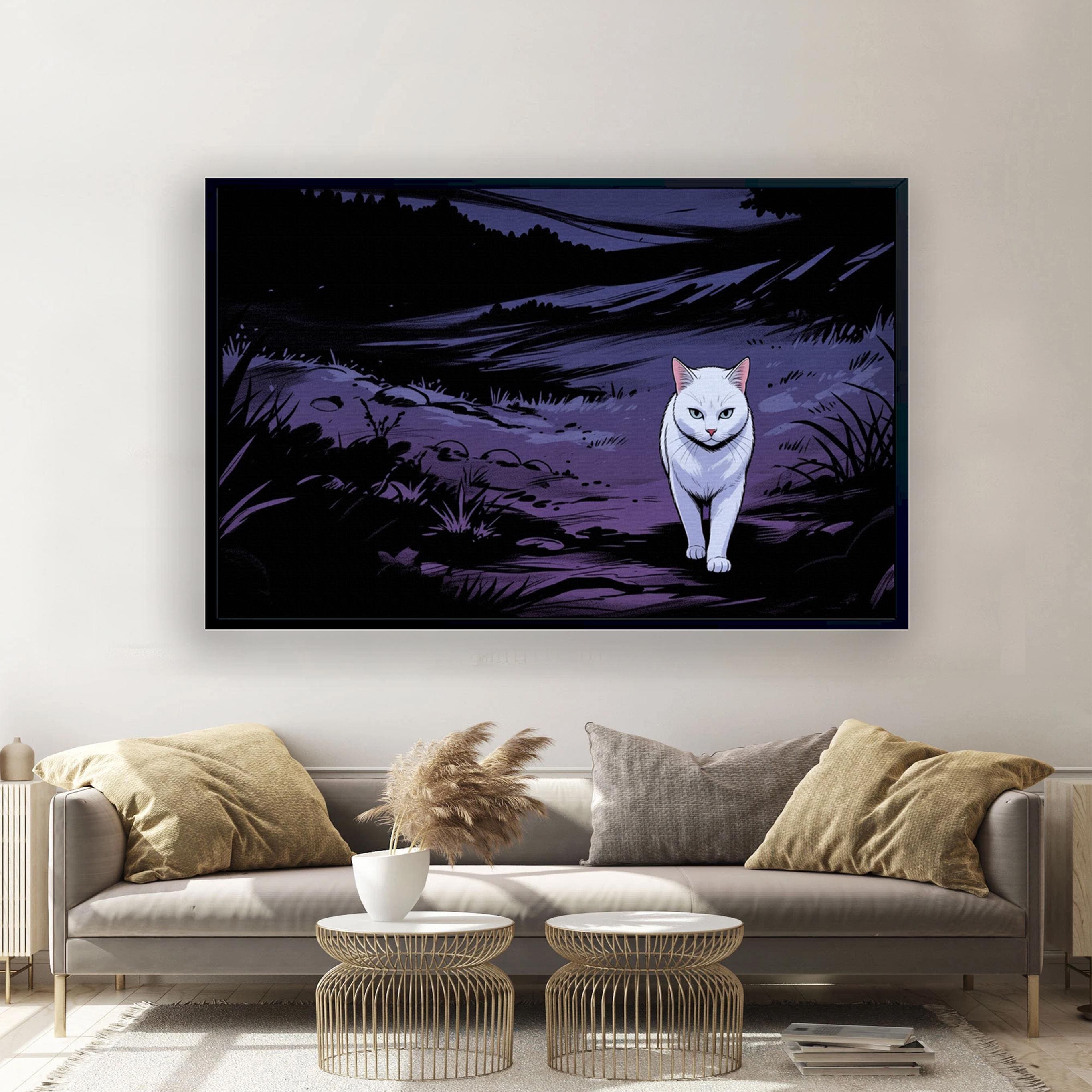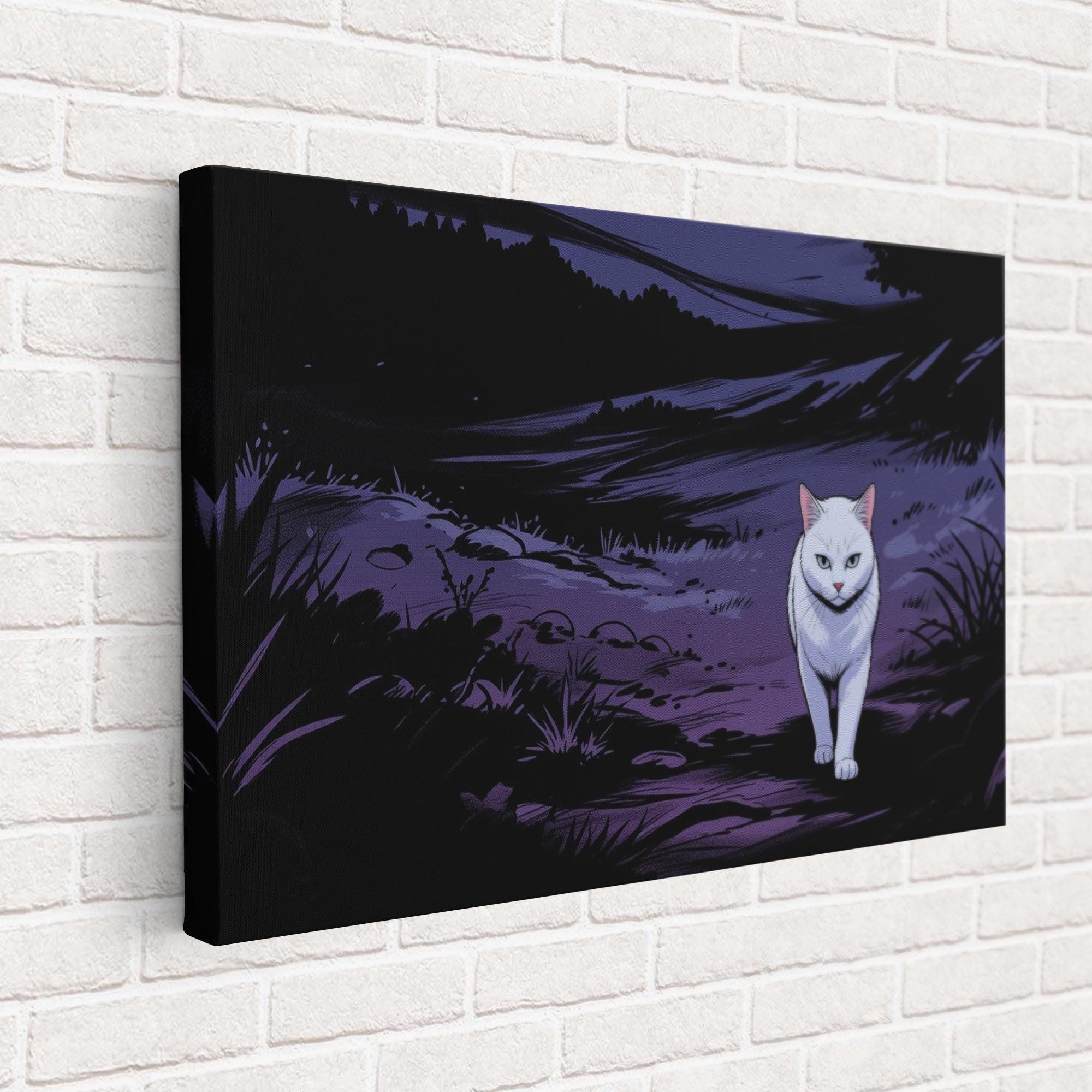 Cat Canvas Wall Art, Lonely White Animal in the Dark Forest, Street Animal Memorial Gift, Modern Decor, Ready to Hang.