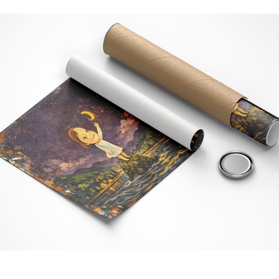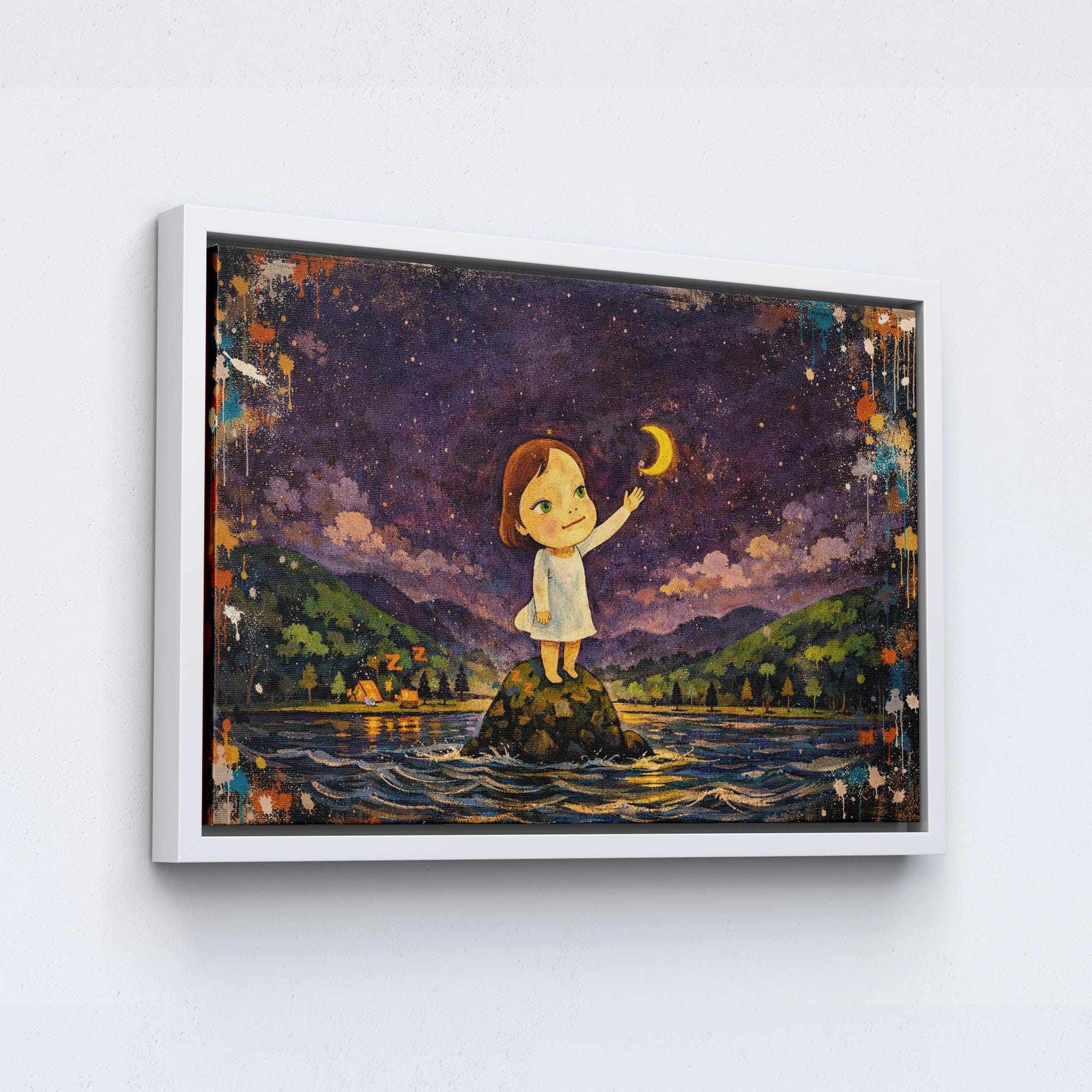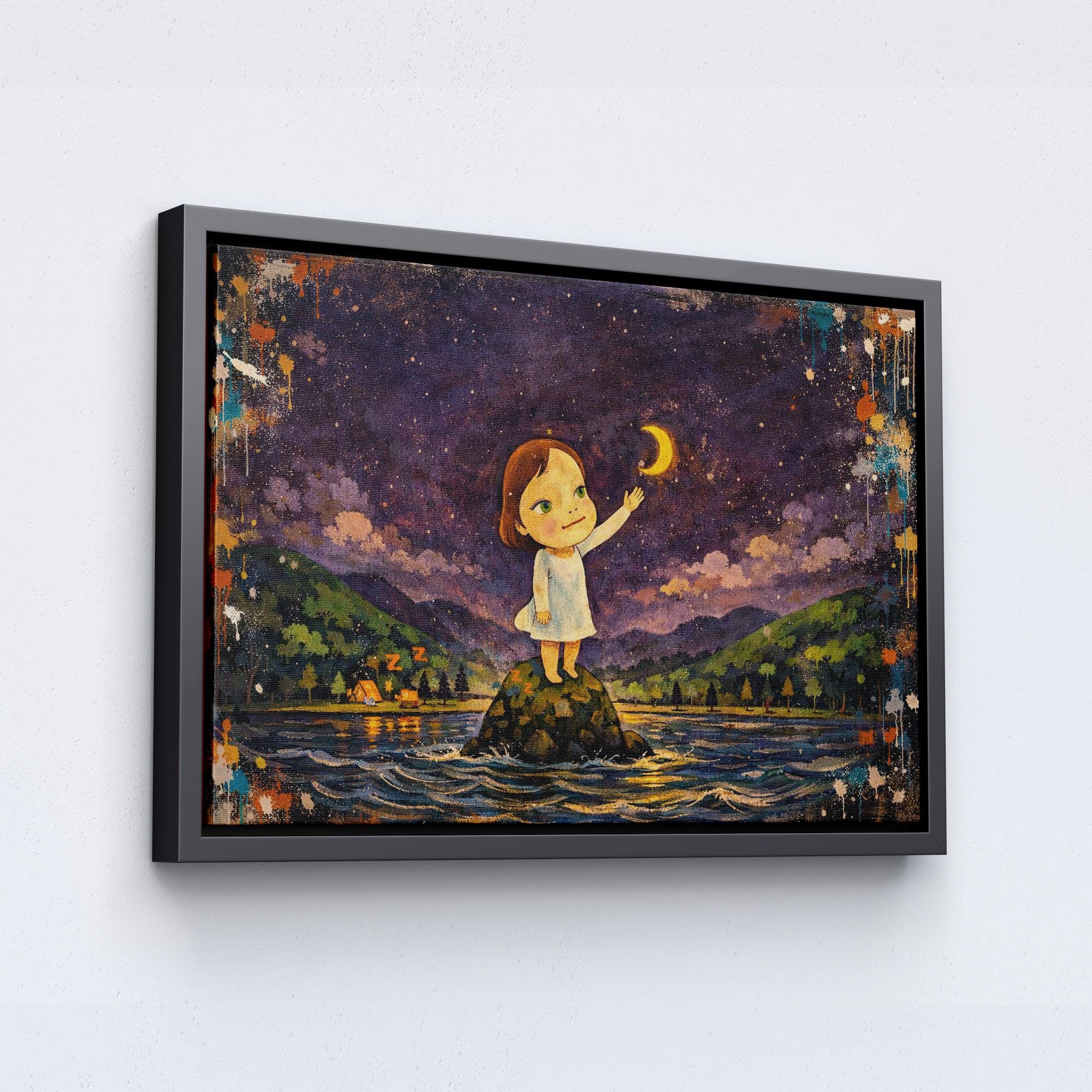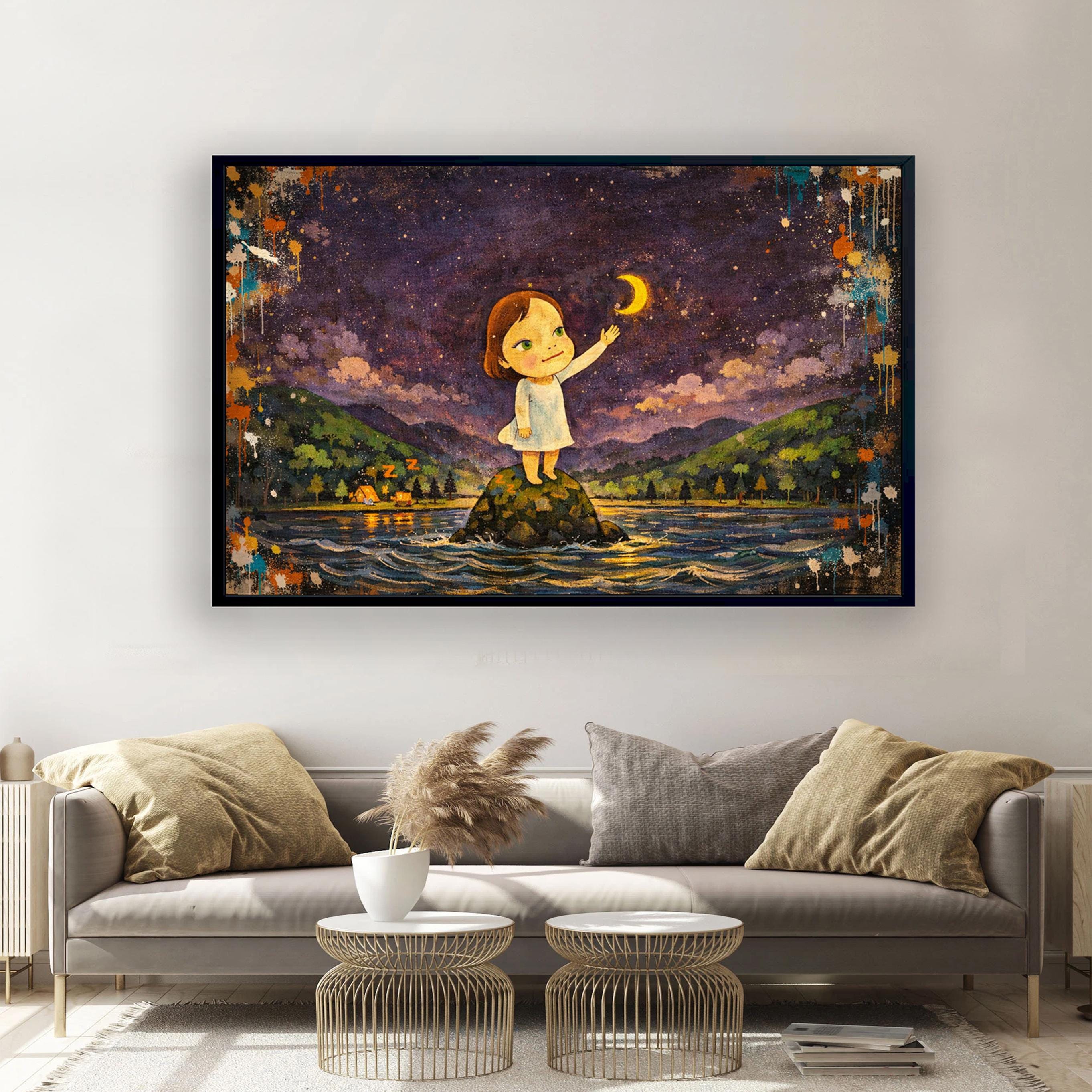 Girl Under Crescent Moon Canvas Wall Art, Yoshitomo Nara Modern Home Decor, Contemporary Poster., Minimalist Tree Scene, Serene Home Decor, Ready to Hang.