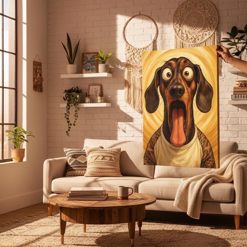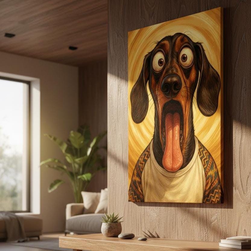 Dog Canvas Wall Art, Adorable Fan Poster, Minimalist Modern Home Decor, Ready to Hang.